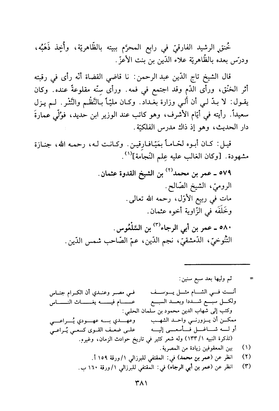 [3] انظر عن (عمر بن أبي الرجاء) في: المقتفي للبرزالي 1/ ورقة 160 ب.