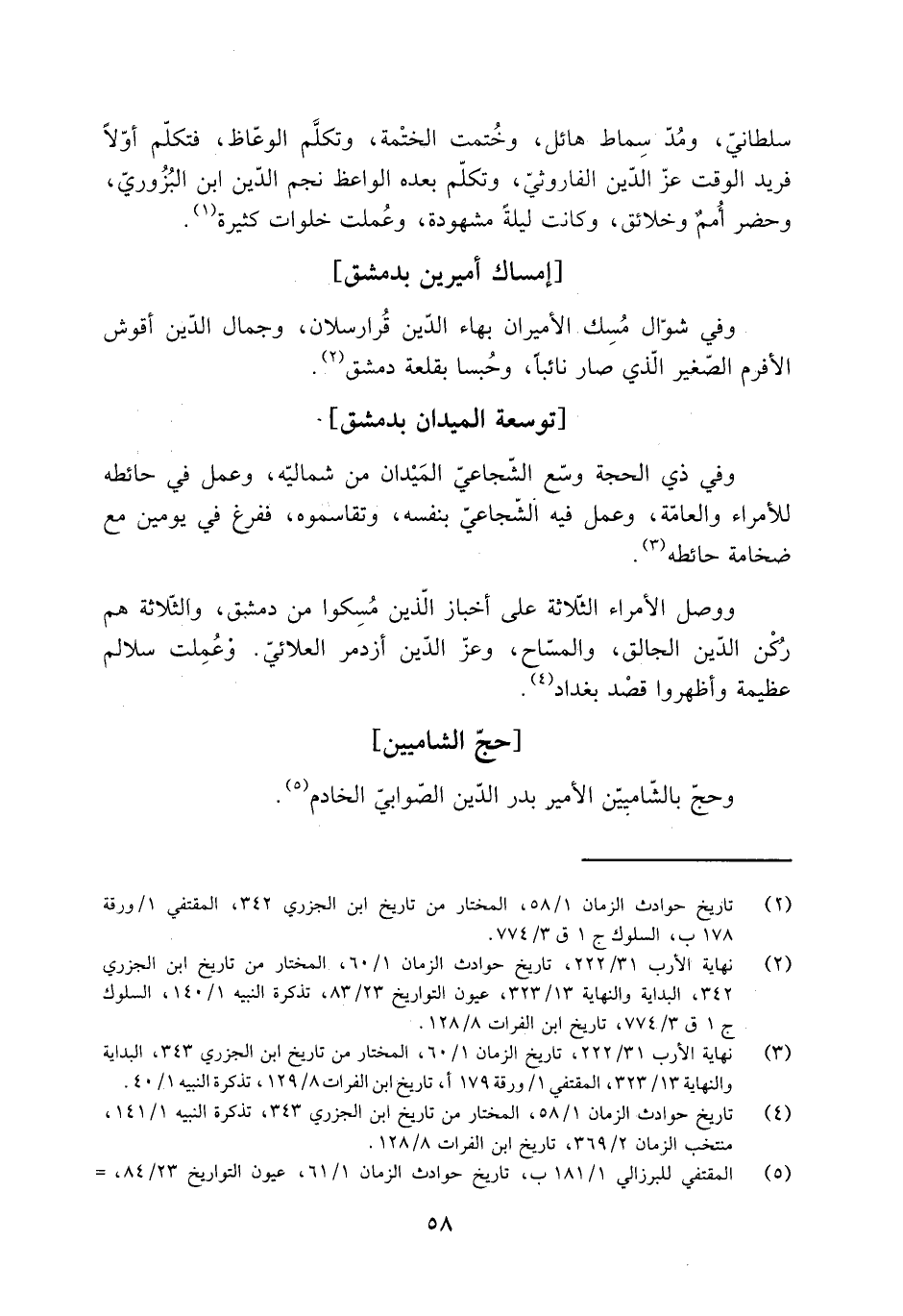 [5] المقتفي للبرزالي 1/ 181 ب، تاريخ حوادث الزمان 1/ 61، عيون التواريخ 23/ 84،
