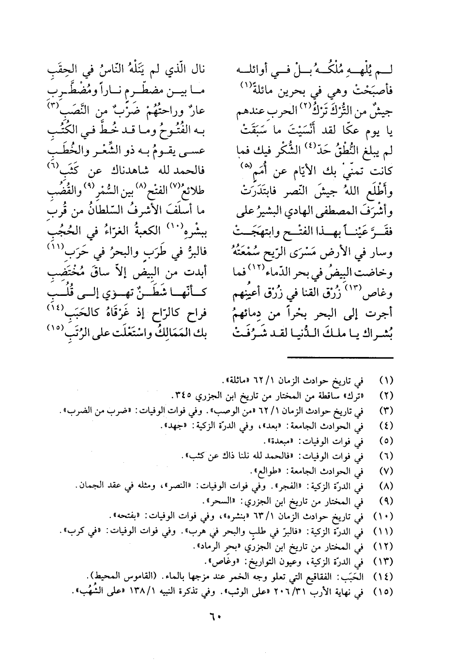 [3] في تاريخ حوادث الزمان 1/ 62 «من الوصب» . وفي فوات الوفيات: «ضرب من الضرب» .
