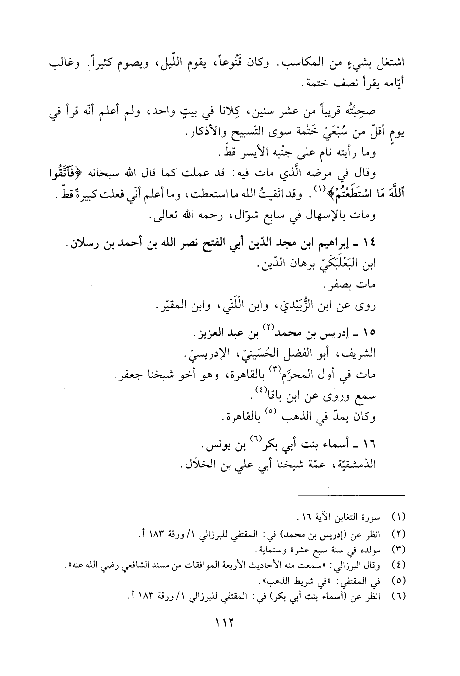 [2] انظر عن (إدريس بن محمد) في: المقتفي للبرزالي 1/ ورقة 183 أ.