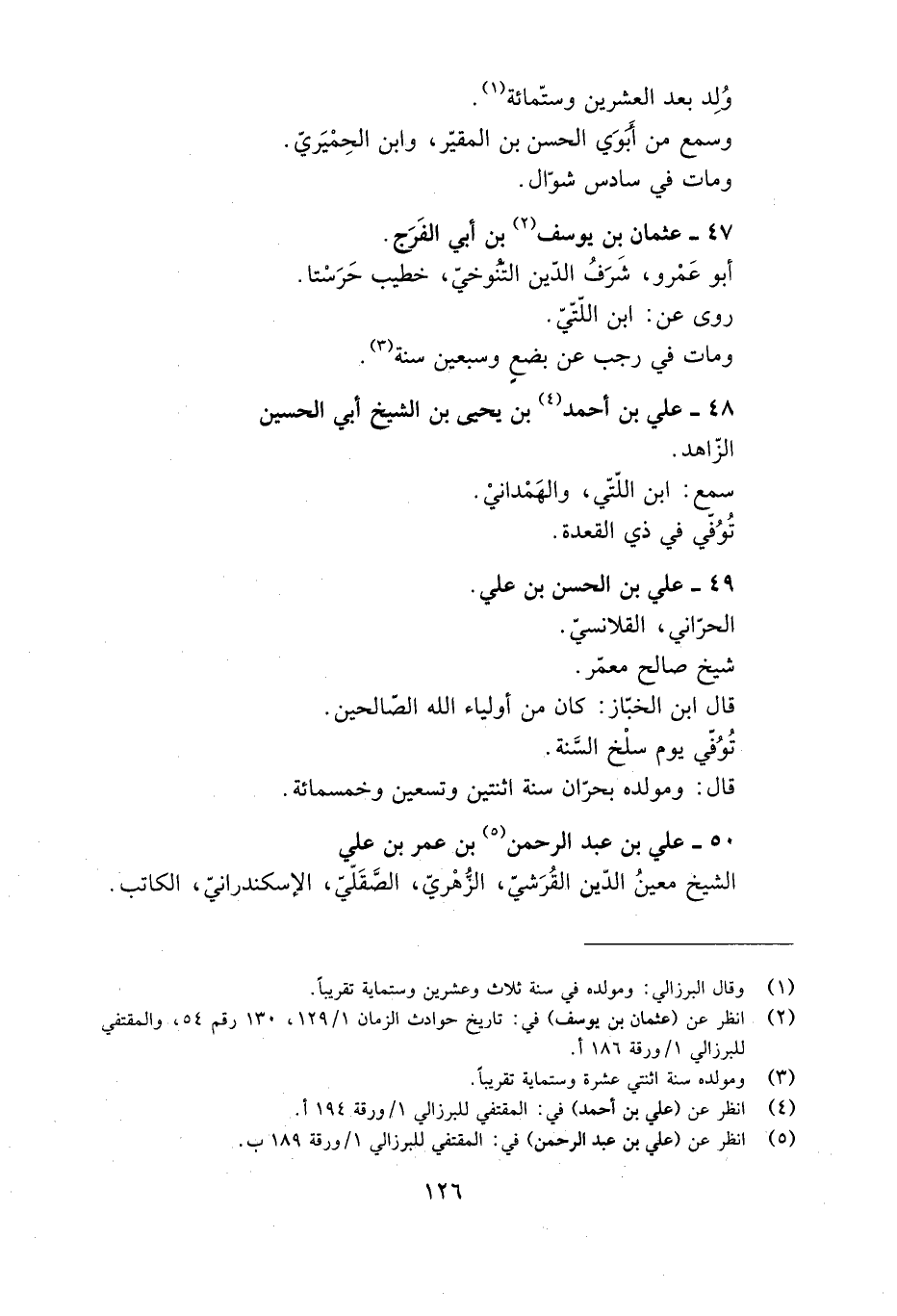 [2] انظر عن (عثمان بن يوسف) في: تاريخ حوادث الزمان 1/ 129، 130 رقم 54، والمقتفي للبرزالي 1/ ورقة 186 أ.