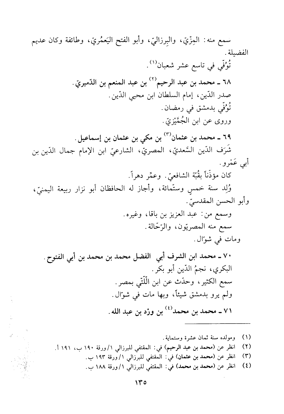 [4] انظر عن (محمد بن محمد) في: المقتفي للبرزالي 1/ ورقة 188 ب.