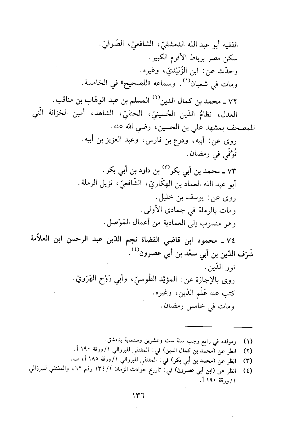 [3] انظر عن (محمد بن أبي بكر) في: المقتفي للبرزالي 1/ ورقة 185 أ، ب
