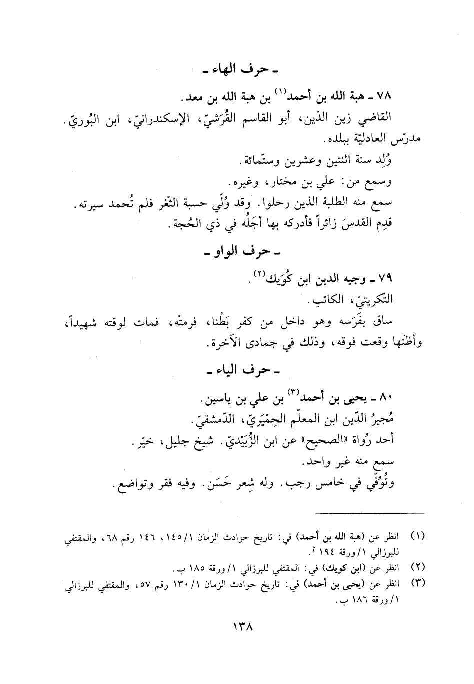 [3] انظر عن (يحيى بن أحمد) في: تاريخ حوادث الزمان 1/ 130 رقم 57، والمقتفي للبرزالي 1/ ورقة 186 ب.