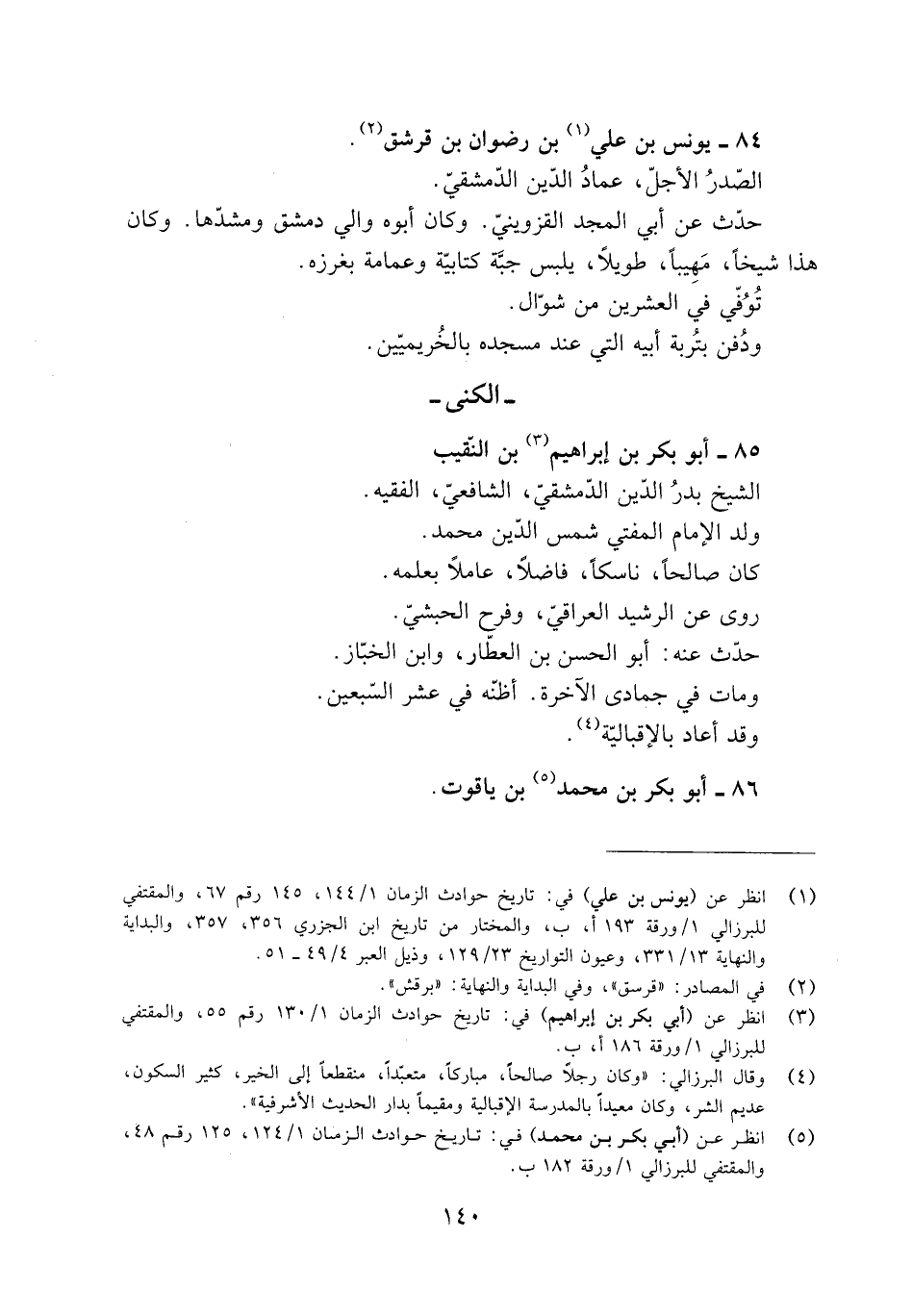 - الكنى- 85- أبو بَكْر بْن إِبْرَاهِيم [3] بْن النقيب الشَّيْخ بدرُ الدِّين الدّمشقيّ، الشافعيّ، الفقيه.