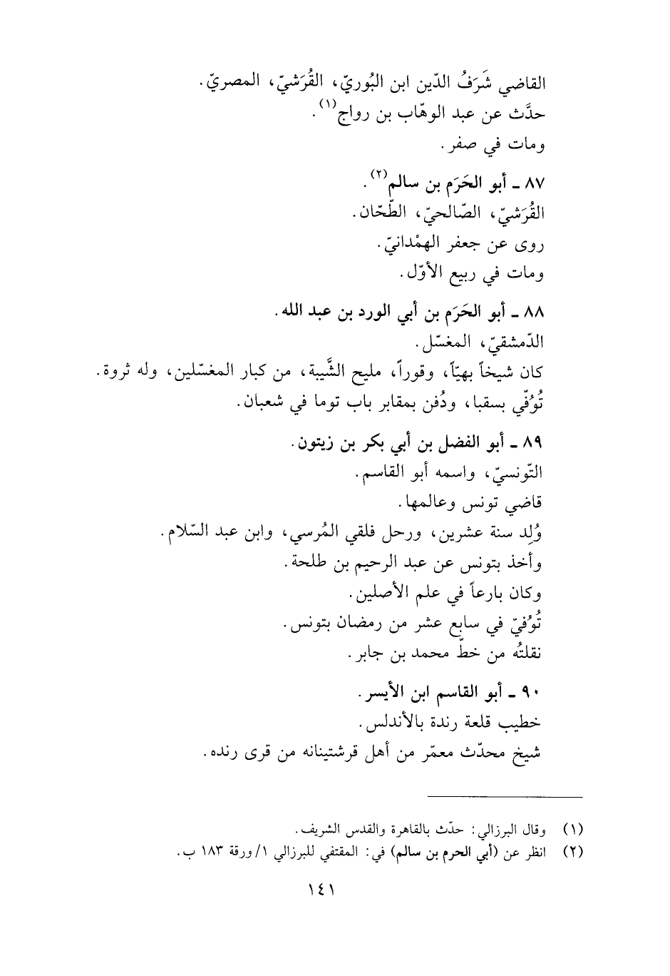 [2] انظر عن (أبي الحرم بن سالم) في: المقتفي للبرزالي 1/ ورقة 183 ب.