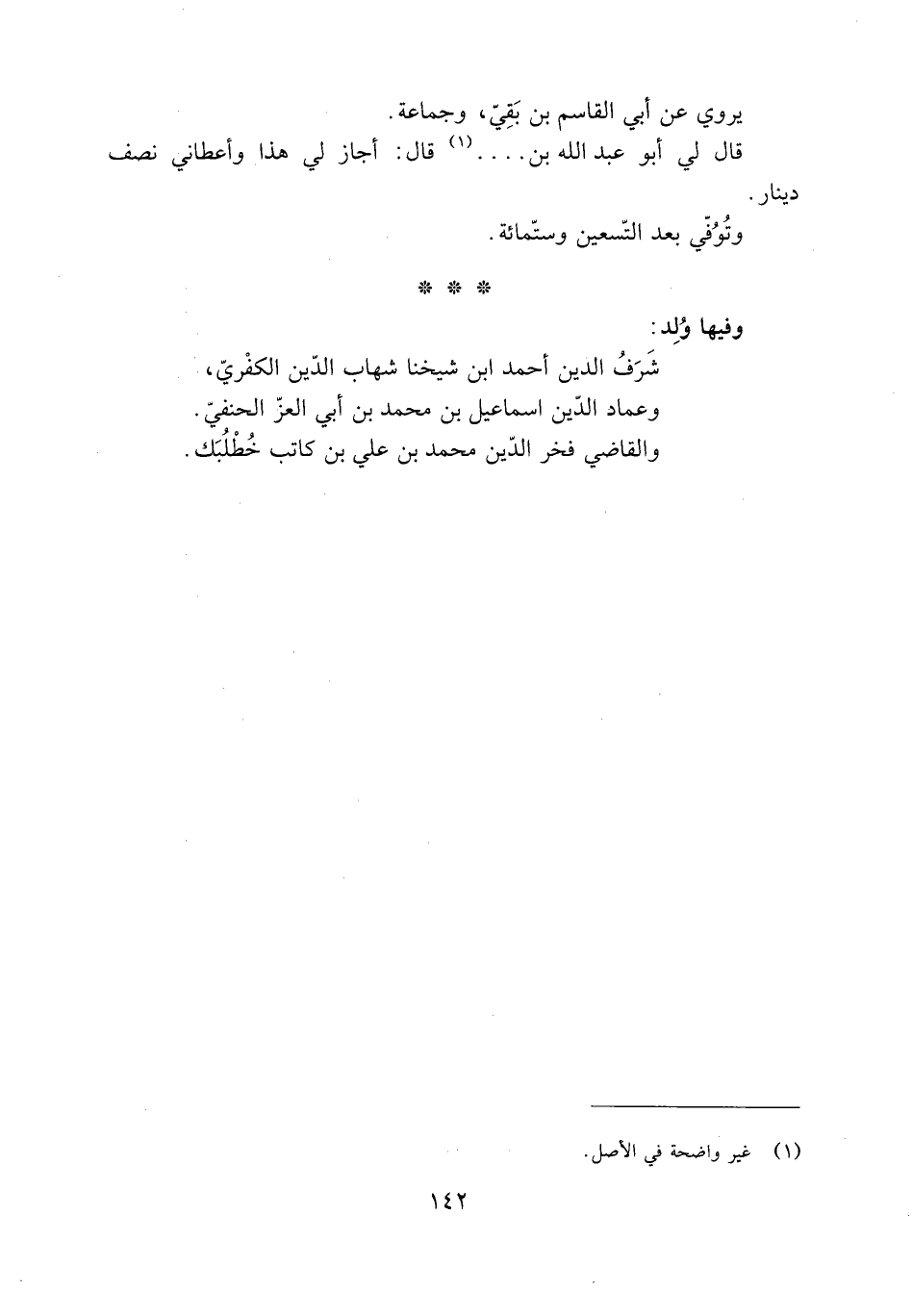 شَرَفُ الدين أحمد ابن شيخنا شهاب الدِّين الكفْريّ، وعماد الدّين إِسْمَاعِيل بْن مُحَمَّد بْن أبي العزّ الحَنَفِيّ.