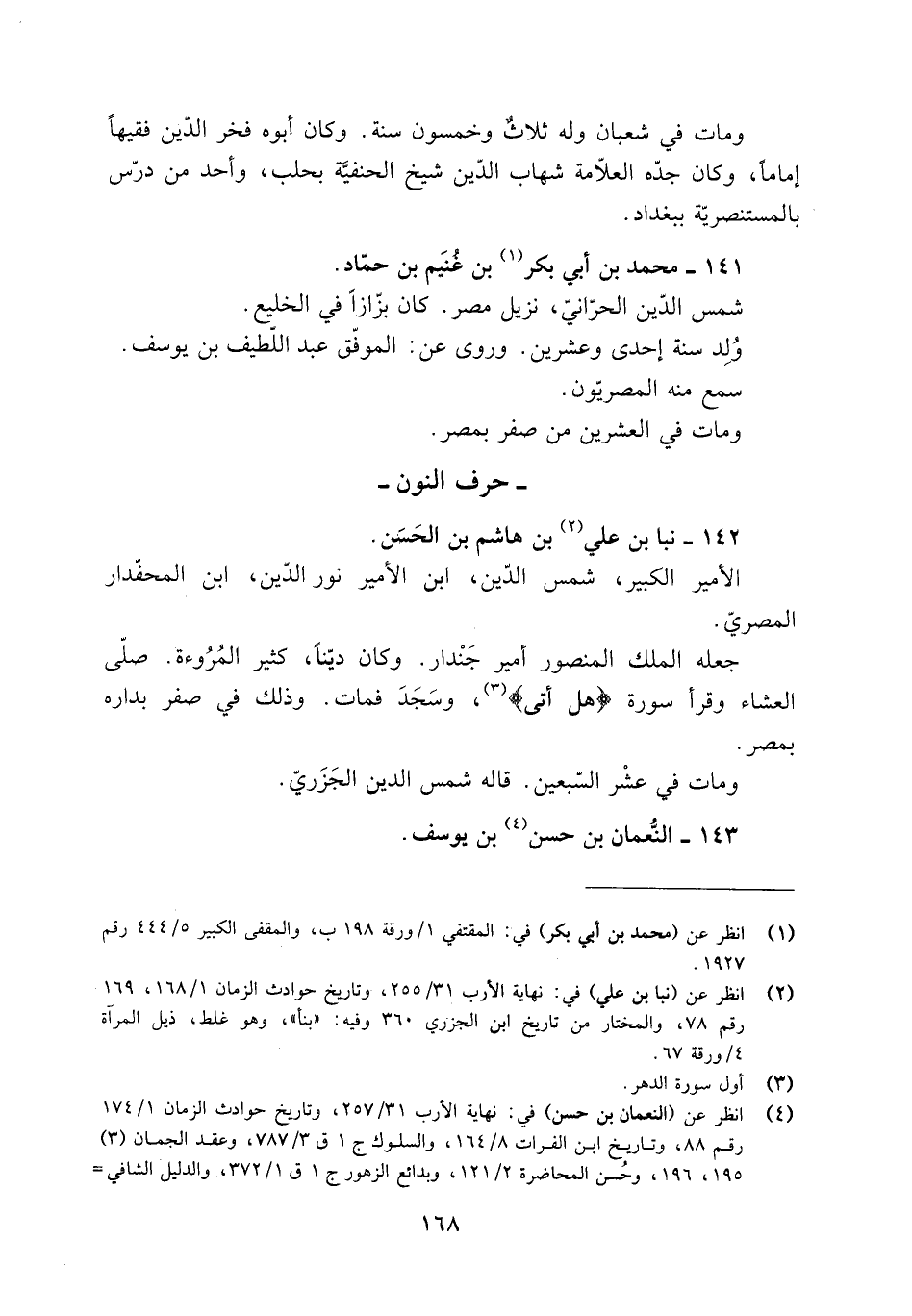 [1] انظر عن (محمد بن أبي بكر) في: المقتفي 1/ ورقة 198 ب، والمقفى الكبير 5/ 444 رقم 1927.