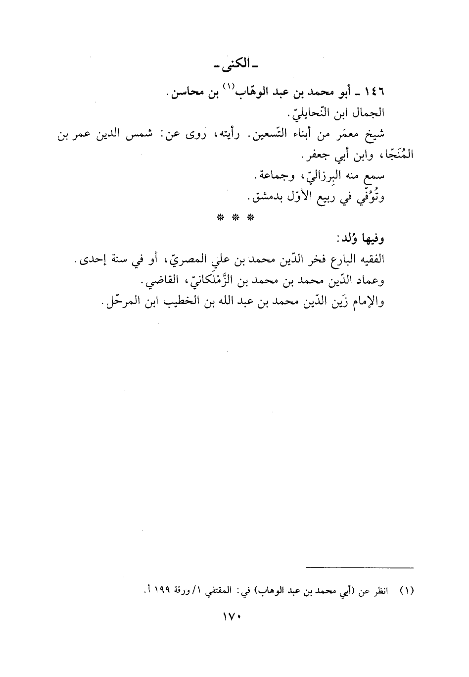- الكنى- 146- أبو محمد بن عبد الوهاب [1] بن محاسن.