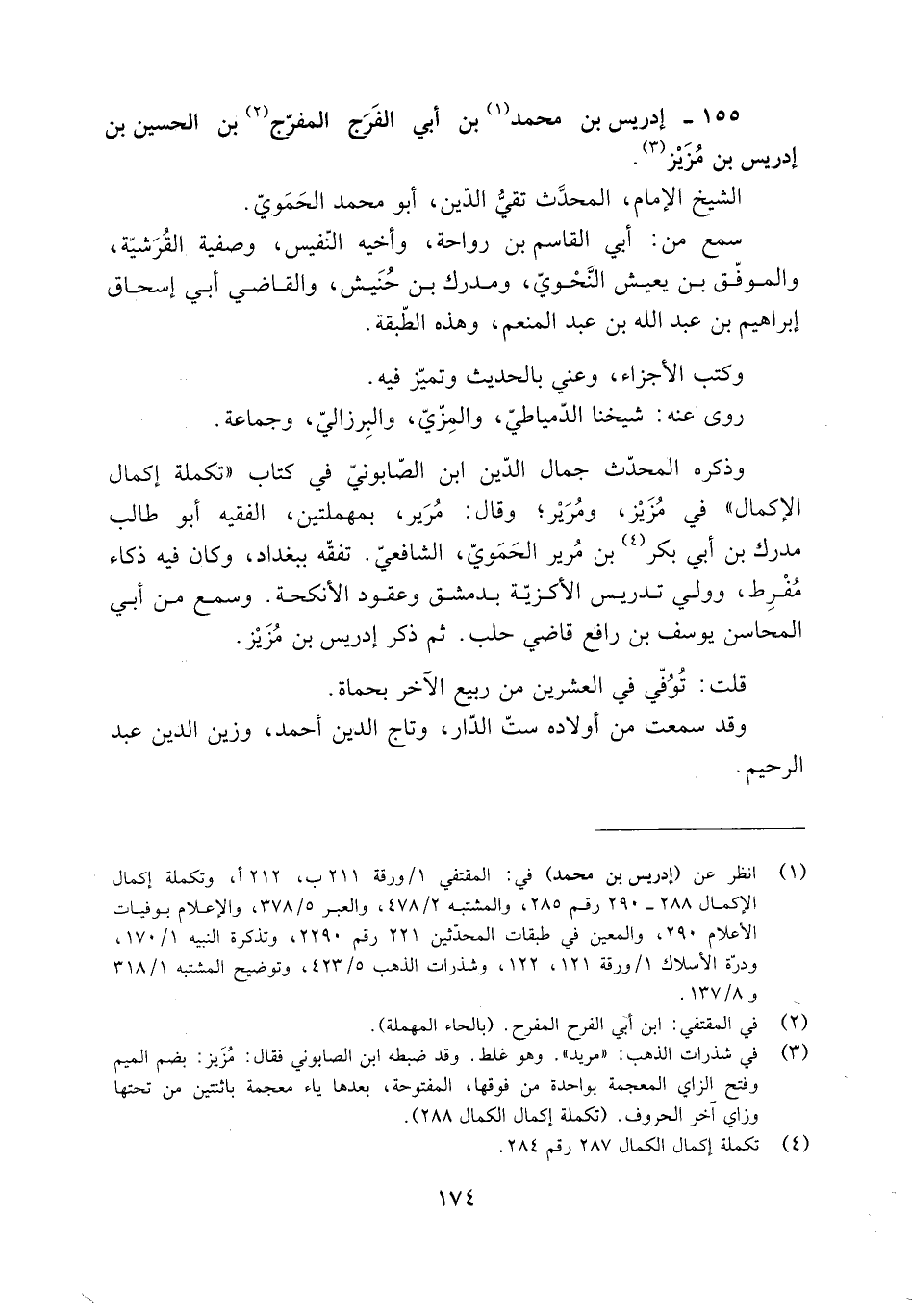 155- إدريس بْن مُحَمَّد [1] بْن أبي الفَرَج المفرج [2] بْن الْحُسَيْن بْن إدريس بْن مُزيْز [3] .