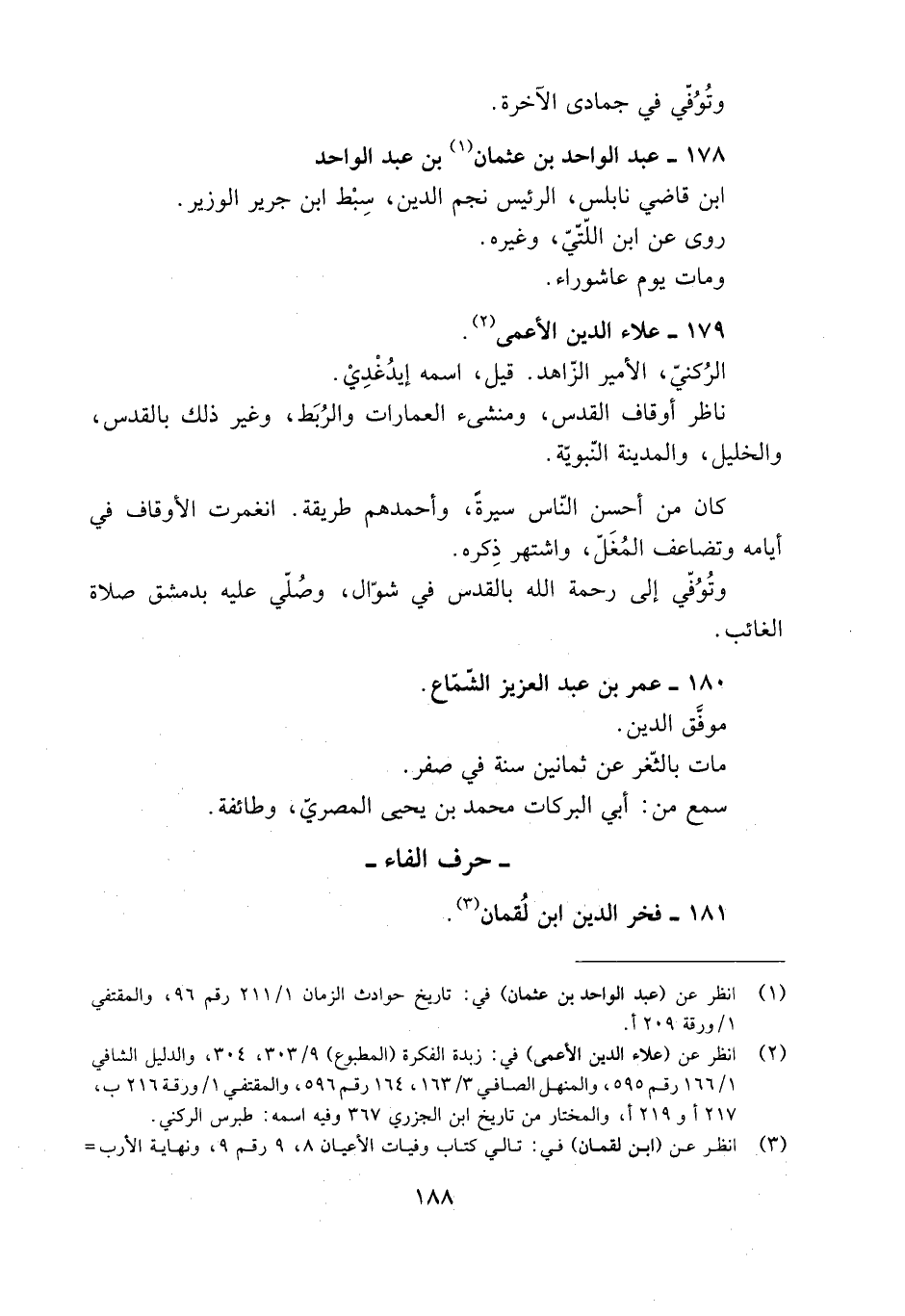 [3] انظر عن (ابن لقمان) في: تالي كتاب وفيات الأعيان 8، 9 رقم 9، ونهاية الأرب