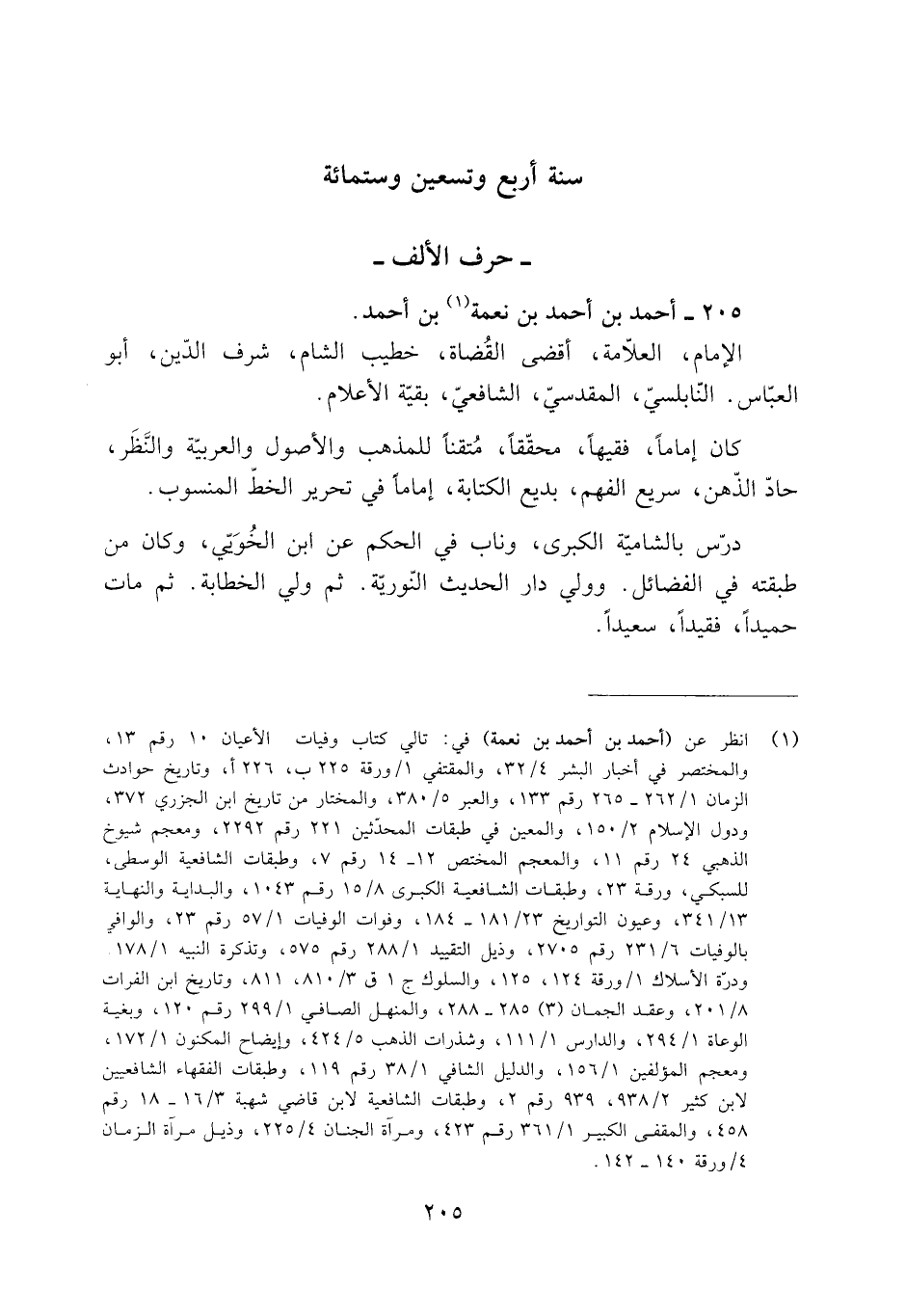 205- أحمدُ بْن أَحْمَد بْن نعمة [1] بْن أَحْمَد.