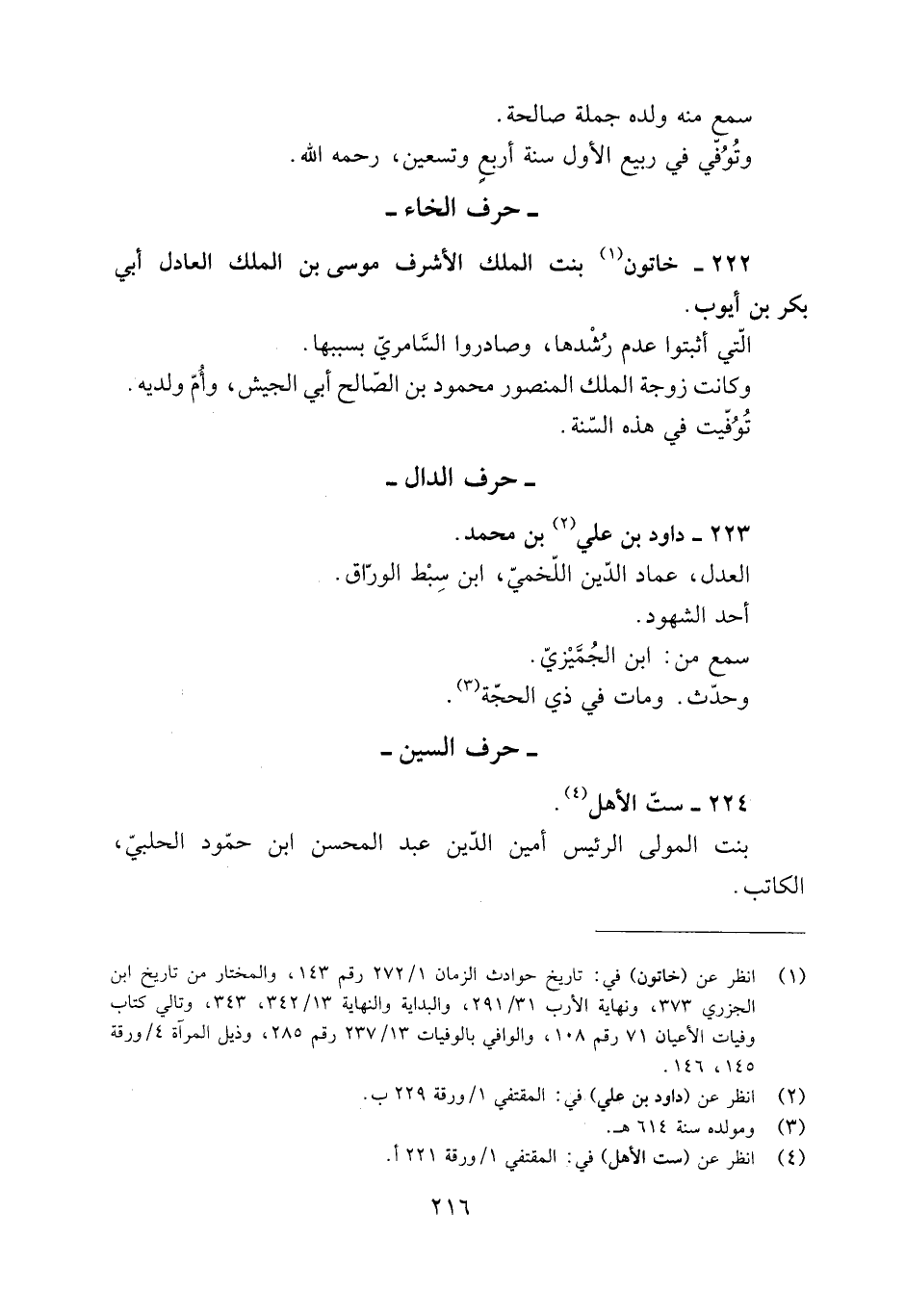 [1] انظر عن (خاتون) في: تاريخ حوادث الزمان 1/ 272 رقم 143، والمختار من تاريخ ابن الجزري 373، ونهاية الأرب 31/ 291، والبداية والنهاية 13/ 342، 343، وتالي كتاب وفيات الأعيان 71 رقم 108، والوافي بالوفيات 13/ 237 رقم 285، وذيل المرآة 4/ ورقة 145، 146.