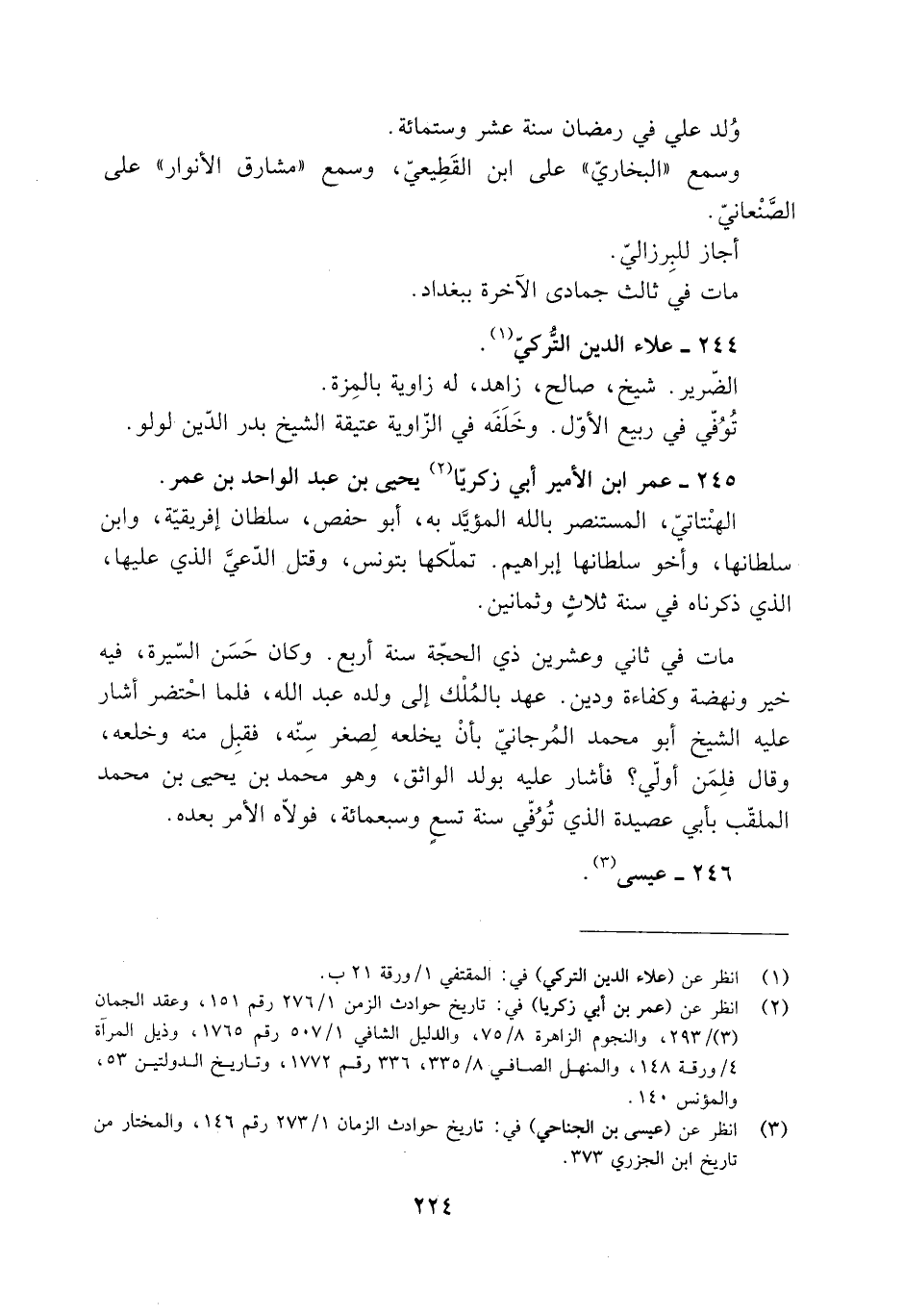 245- عمر ابن الأمير أبي زَكَرِيّا [2] يحيى بْن عَبْد الواحد بن عمر.