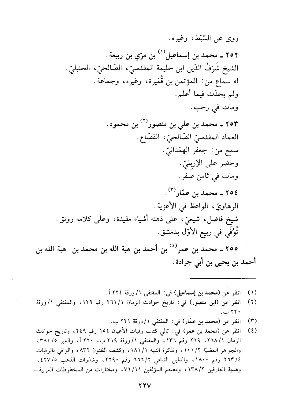[2] انظر عن (ابن منصور) في: تاريخ حوادث الزمان 1/ 261 رقم 129، والمقتفي 1/ ورقة 220 ب.