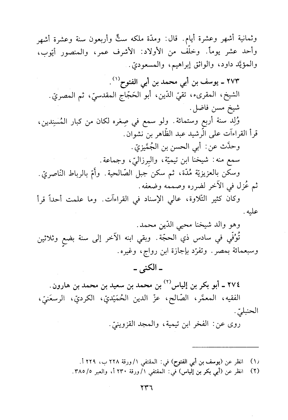[2] انظر عن (أبي بكر بن إلياس) في: المقتفي 1/ ورقة 230 أ، والعبر 5/ 385.