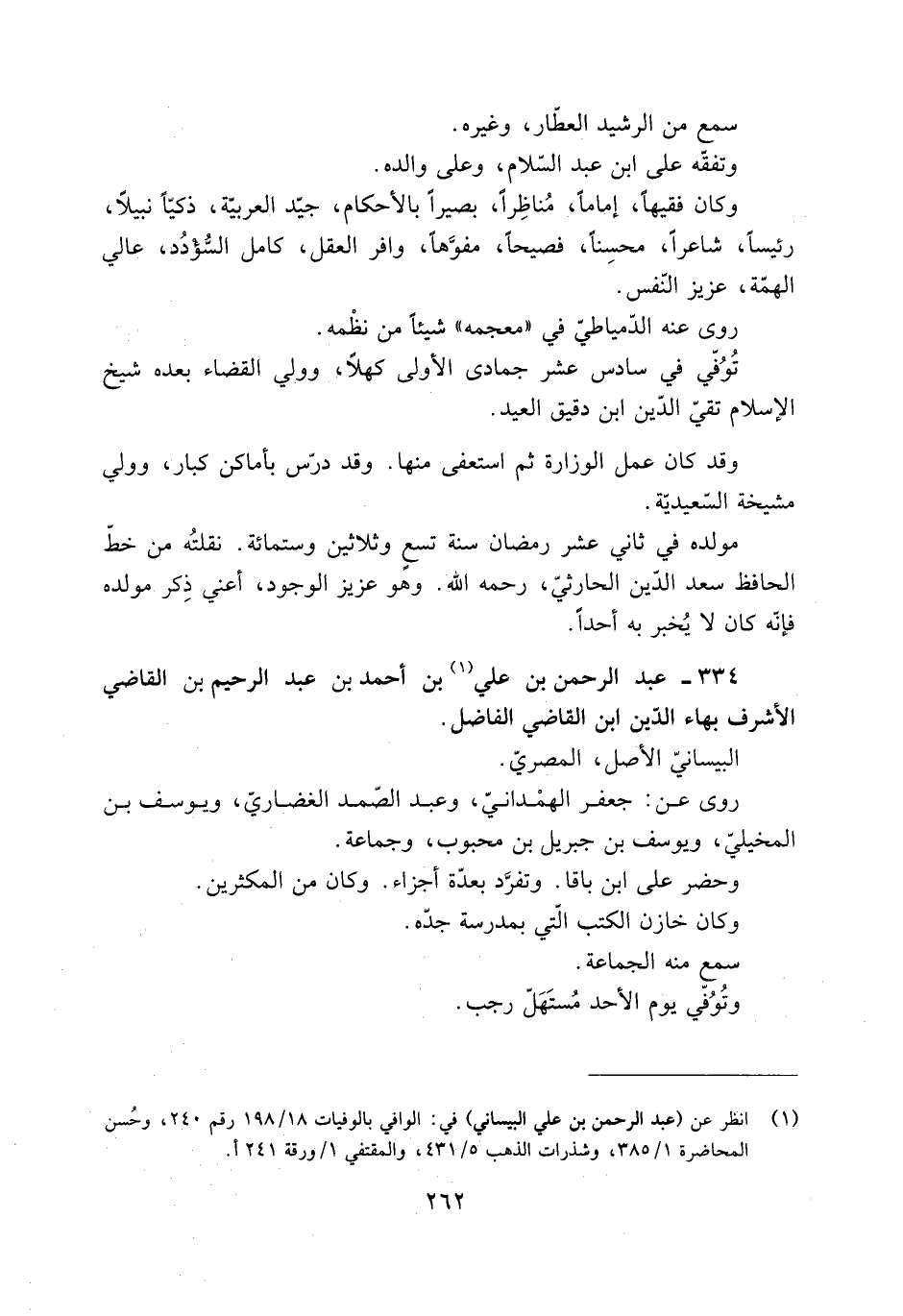 [1] انظر عن (عبد الرحمن بن علي البيساني) في: الوافي بالوفيات 18/ 198 رقم 240، وحسن المحاضرة 1/ 385، وشذرات الذهب 5/ 431، والمقتفي 1/ ورقة 241 أ.