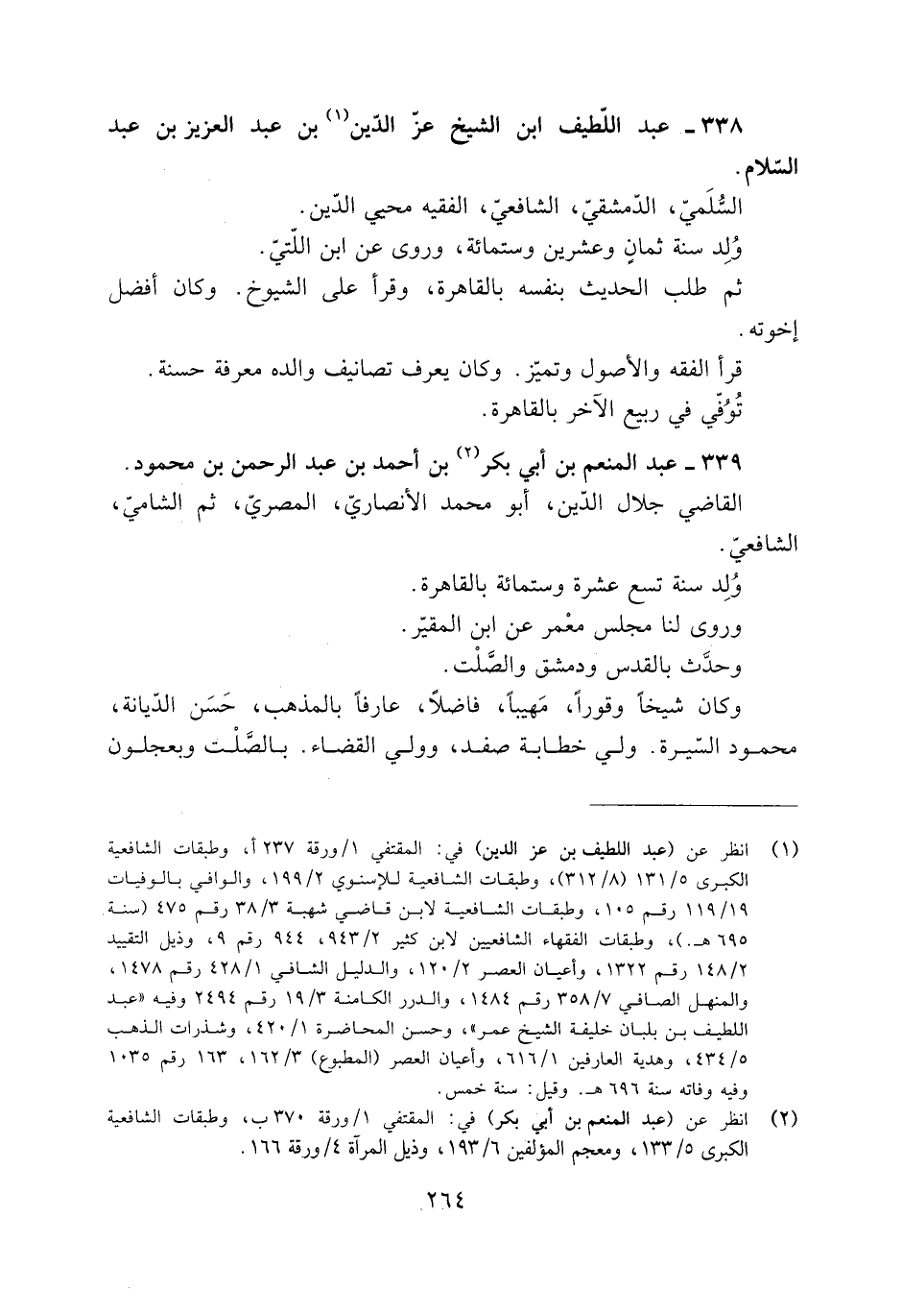 338- عَبْد اللطيف ابْن الشَّيْخ عزَّ الدِّين [1] بْن عَبْد العزيز بْن عَبْد السلام.