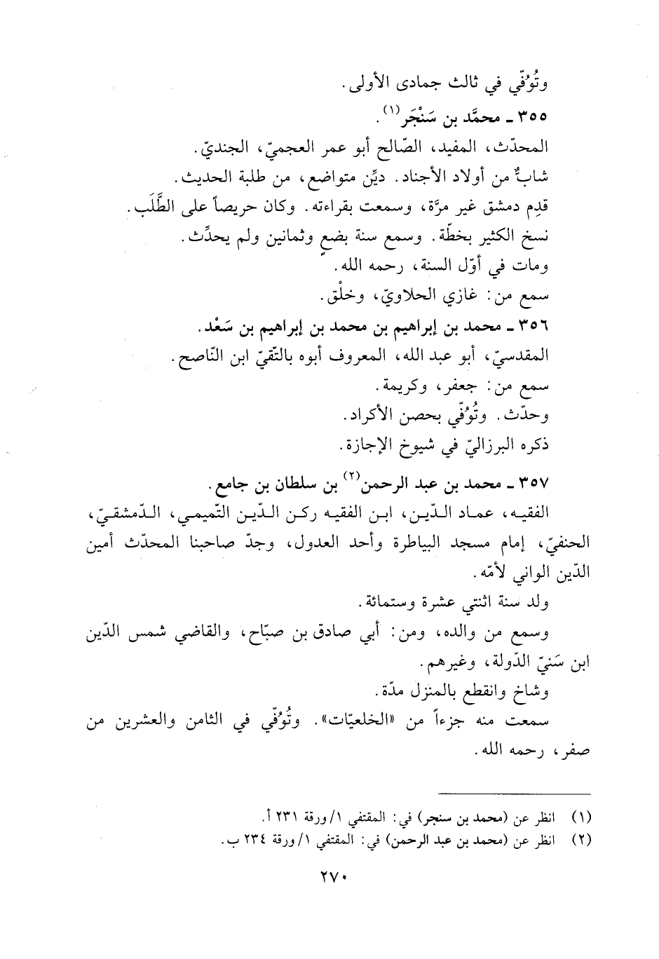 [2] انظر عن (محمد بن عبد الرحمن) في: المقتفي 1/ ورقة 234 ب.