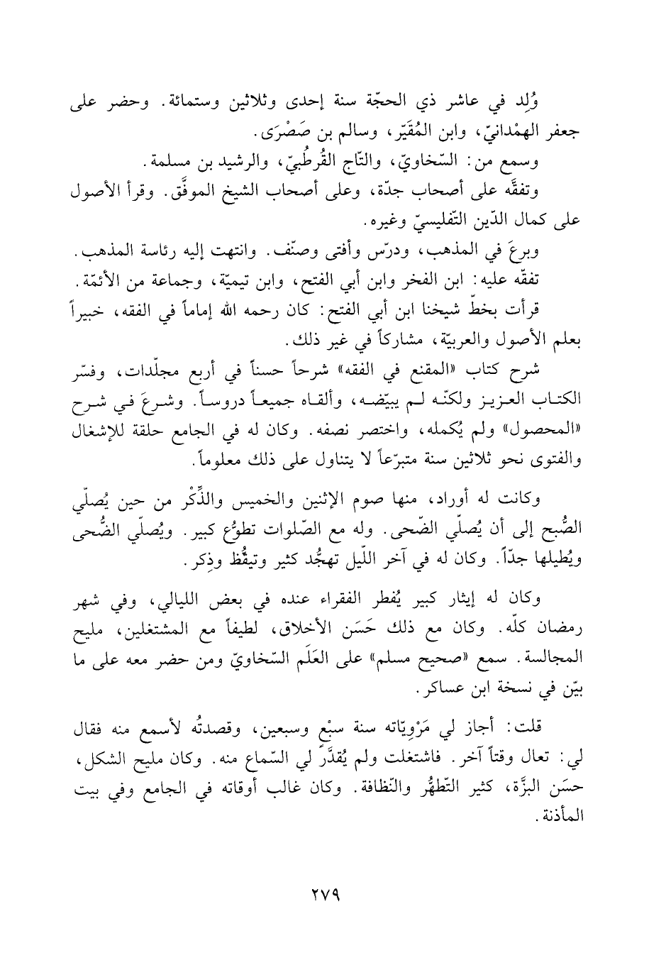 قرأت بخط شيخنا ابن أبي الفتح: كان رحمه الله إماما فِي الفقه، خبيرا بعلم الأصول والعربية، مشاركا فِي غير ذَلِكَ.