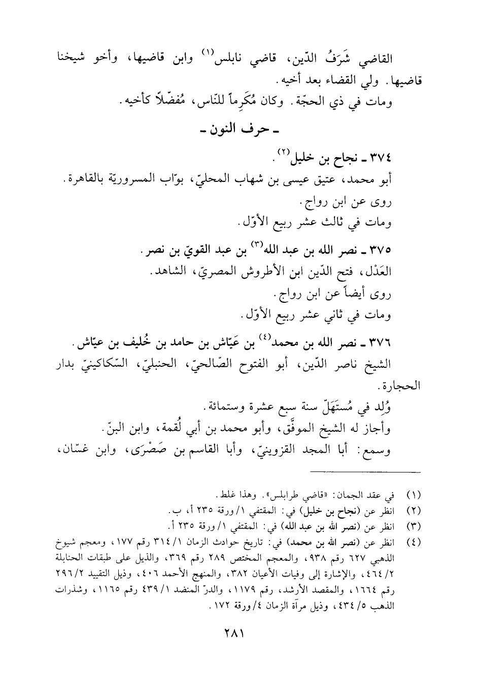 - حرف النون- 374- نجاح بْن خليل [2] أبو مُحَمَّد، عتيق عِيسَى بْن شهاب المحليّ، بوّاب المسرورية بالقاهرة.