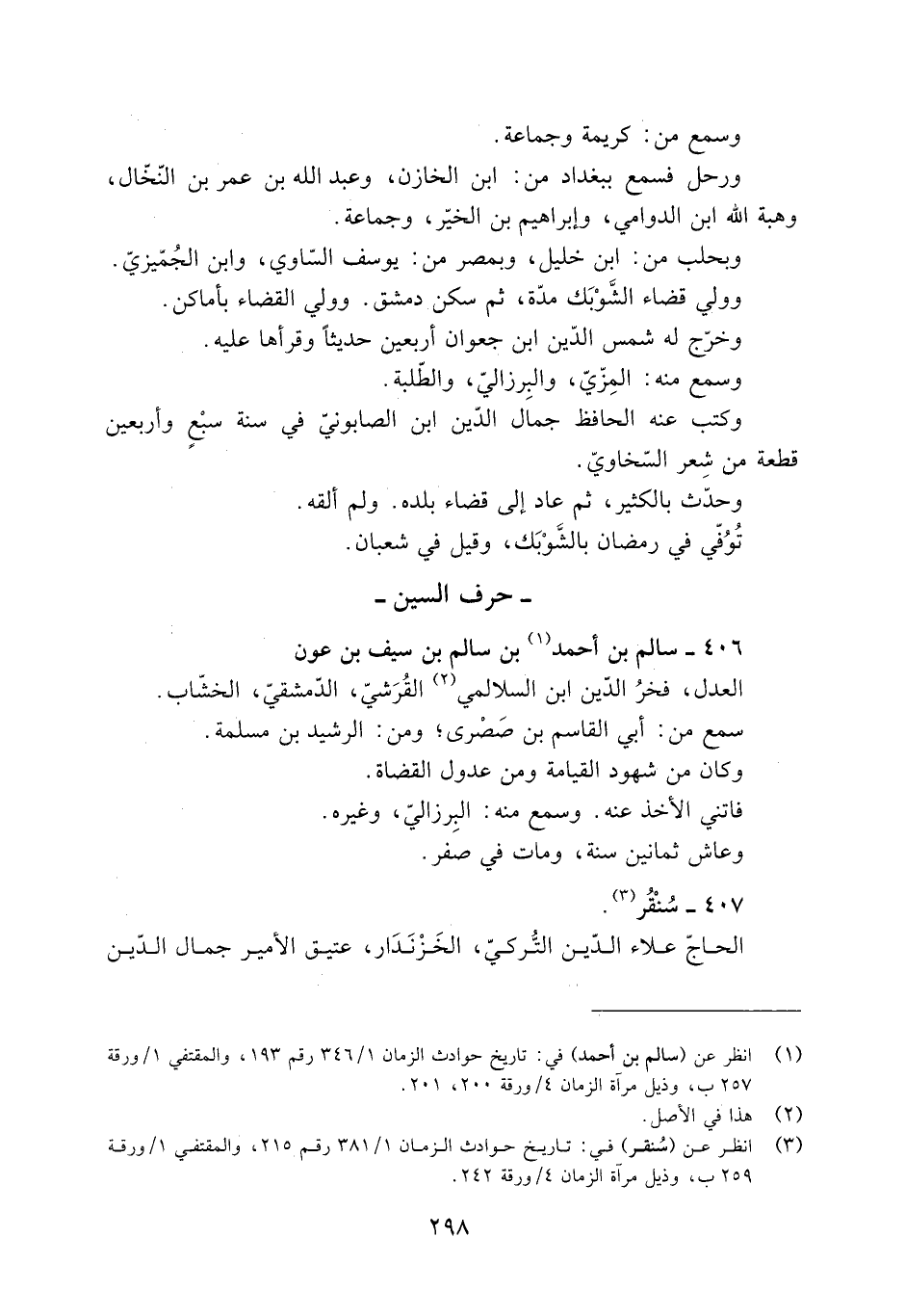 [1] انظر عن (سالم بن أحمد) في: تاريخ حوادث الزمان 1/ 346 رقم 193، والمقتفي 1/ ورقة 257 ب، وذيل مرآة الزمان 4/ ورقة 200، 201.