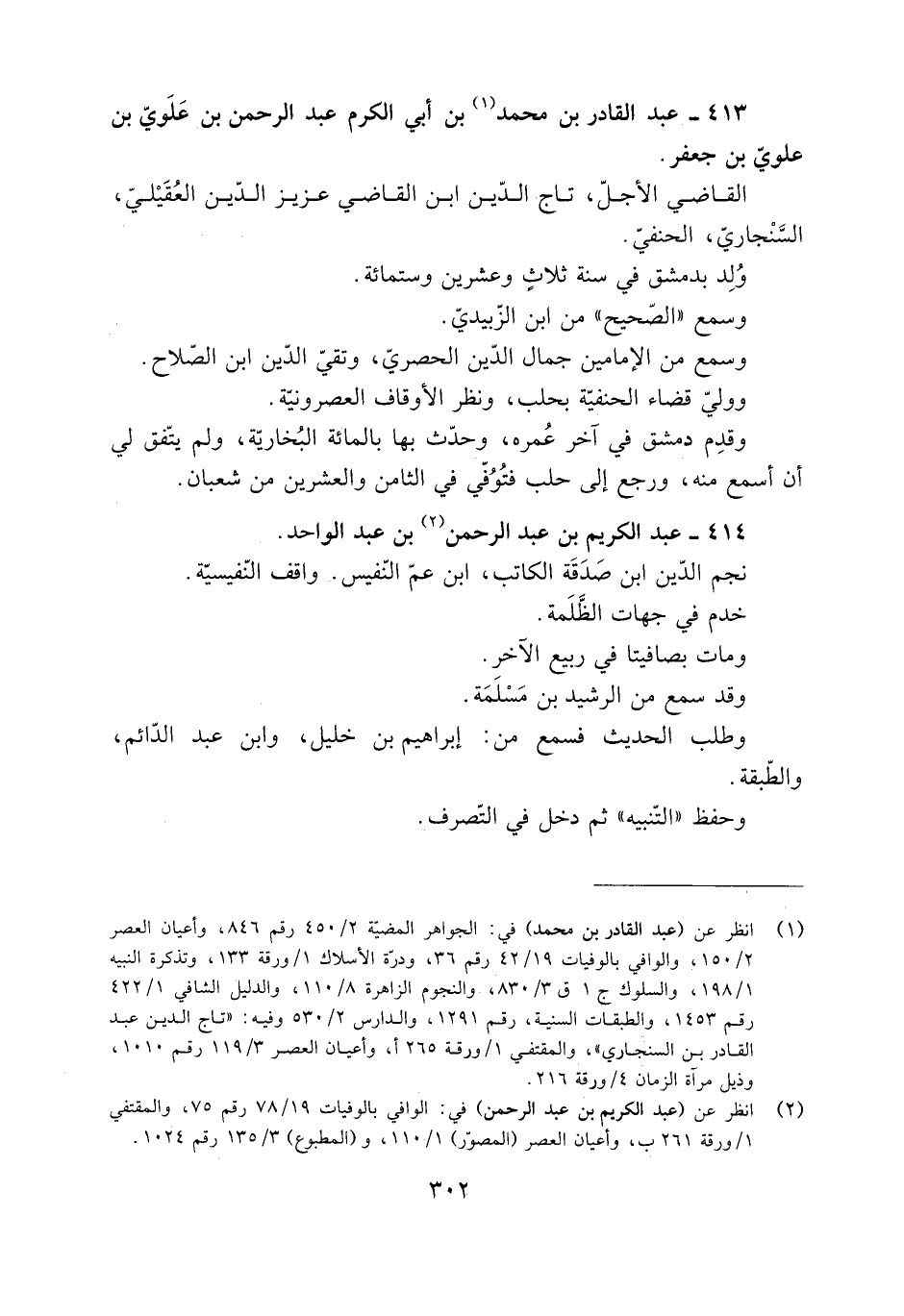 [1] انظر عن (عبد القادر بن محمد) في: الجواهر المضية 2/ 450 رقم 846، وأعيان العصر 2/ 150، والوافي بالوفيات 19/ 42 رقم 36، ودرة الأسلاك 1/ ورقة 133، وتذكرة النبيه 1/ 198، والسلوك ج 1 ق 3/ 830، والنجوم الزاهرة 8/ 110، والدليل الشافي 1/ 422 رقم 1453، والطبقات السنية، رقم 1291، والدارس 2/ 530، وفيه: «تاج الدين عبد القادر بن السنجاري» ، والمقتفي 1/ ورقة 265 أ، وأعيان العصر 3/ 119 رقم 1010، وذيل مرآة الزمان 4/ ورقة 216.