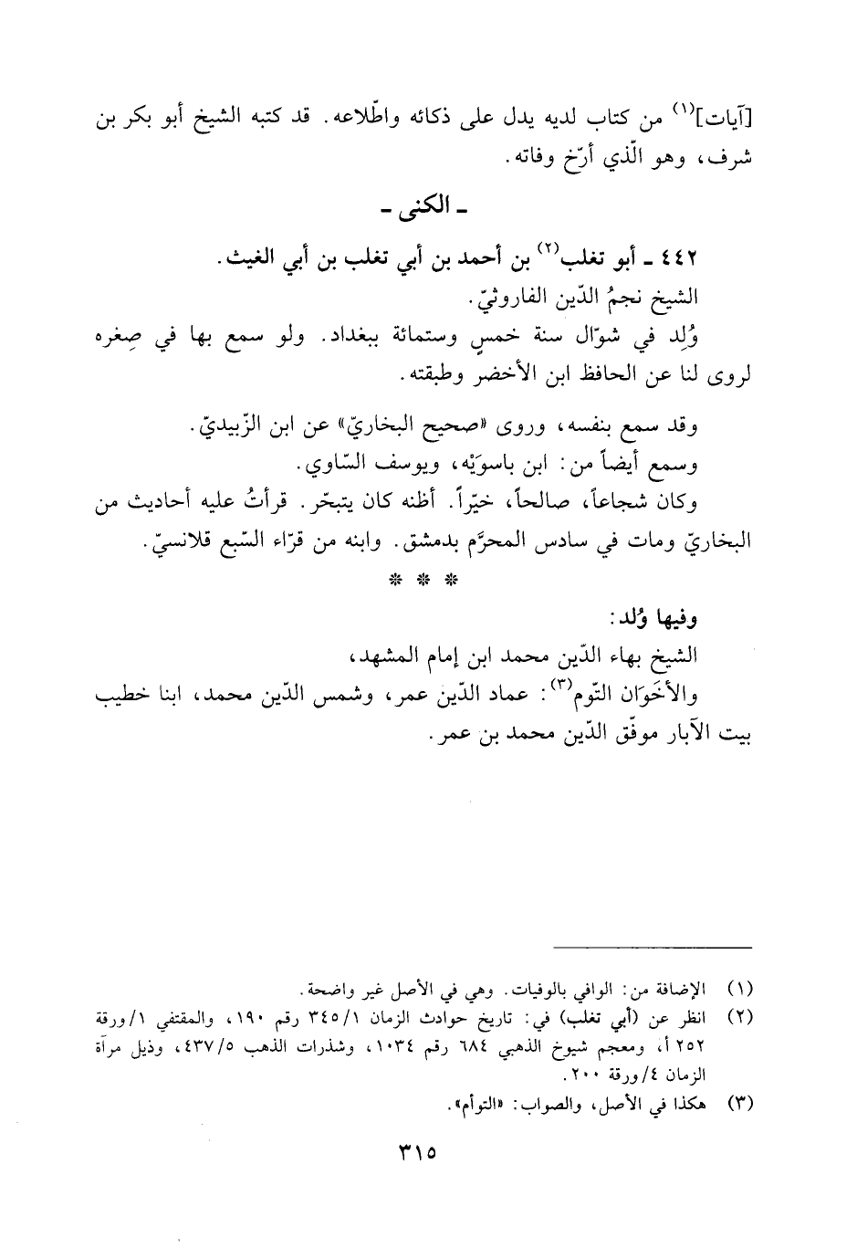 [2] انظر عن (أبي تغلب) في: تاريخ حوادث الزمان 1/ 345 رقم 190، والمقتفي 1/ ورقة 252 أ، ومعجم شيوخ الذهبي 684 رقم 1034، وشذرات الذهب 5/ 437، وذيل مرآة الزمان 4/ ورقة 200.