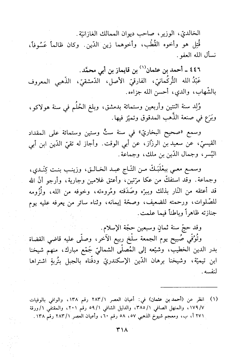 446- أَحْمَد بْن عثمان [1] بْن قايماز بْن أبي مُحَمَّد.