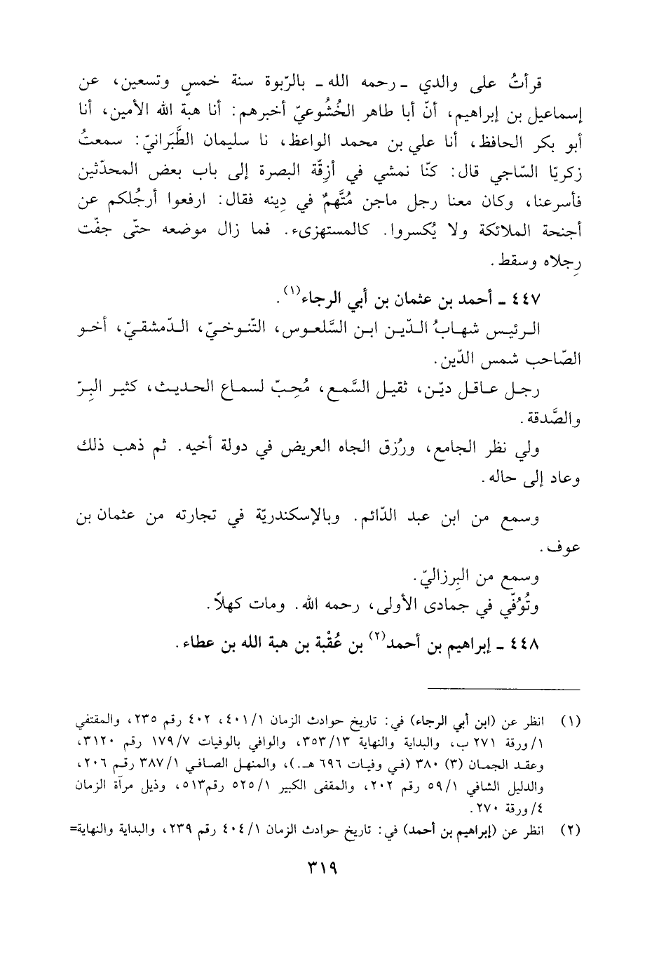 [2] انظر عن (إبراهيم بن أحمد) في: تاريخ حوادث الزمان 1/ 404 رقم 239، والبداية والنهاية