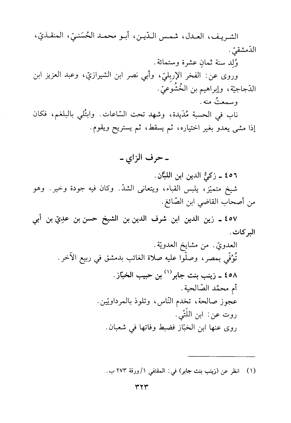 [1] انظر عن (زينب بنت جابر) في: المقتفي 1/ ورقة 273 ب.