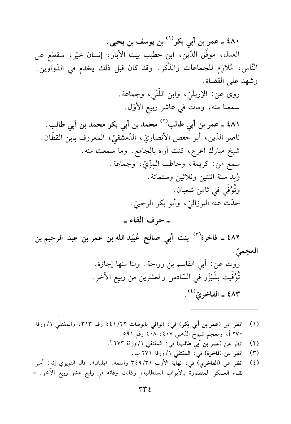 [2] انظر عن (عمر بن أبي طالب) في: المقتفي 1/ ورقة 273 أ.
