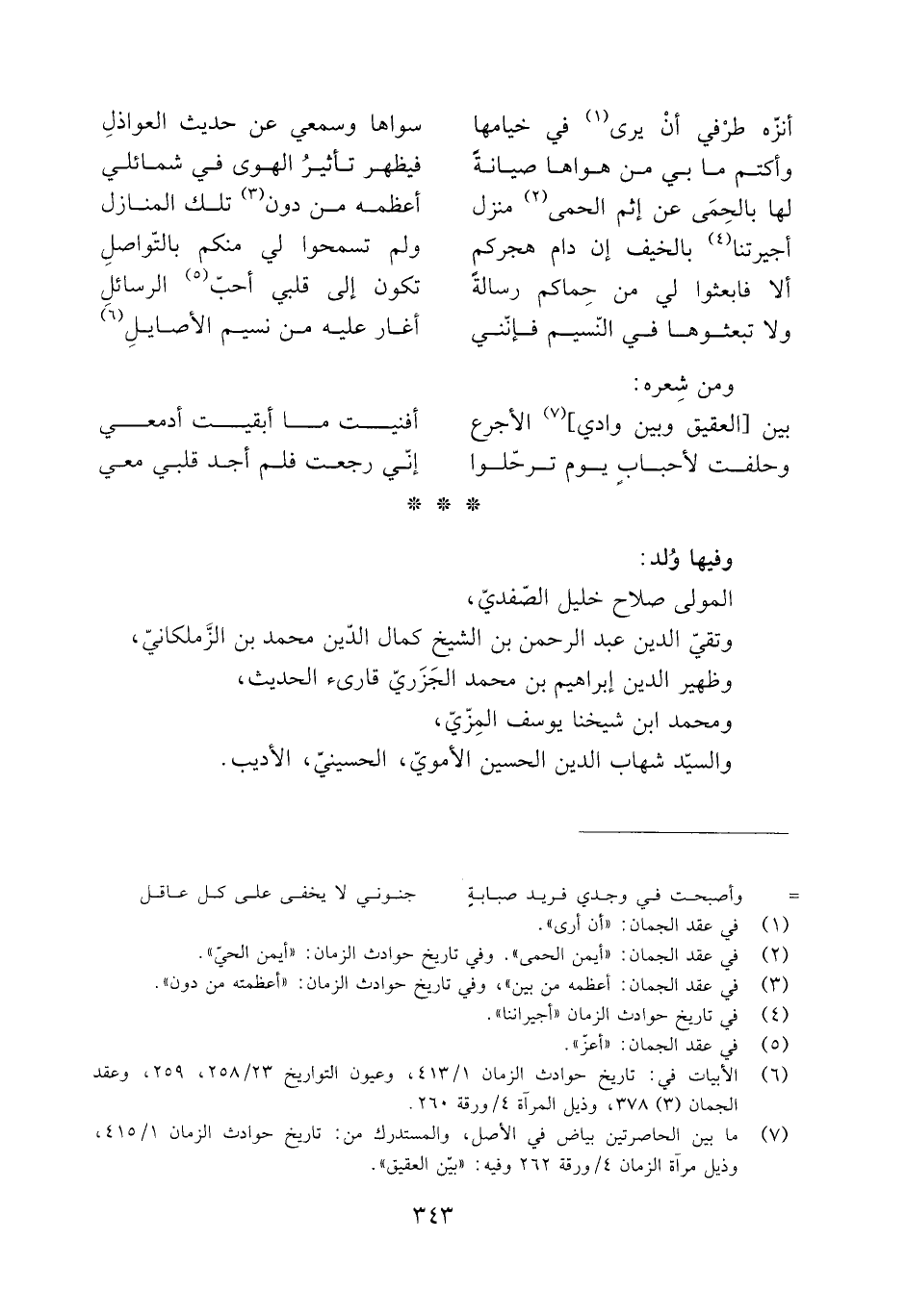 [6] الأبيات في: تاريخ حوادث الزمان 1/ 413، وعيون التواريخ 23/ 258، 259، وعقد الجمان (3) 378، وذيل المرآة 4/ ورقة 260.