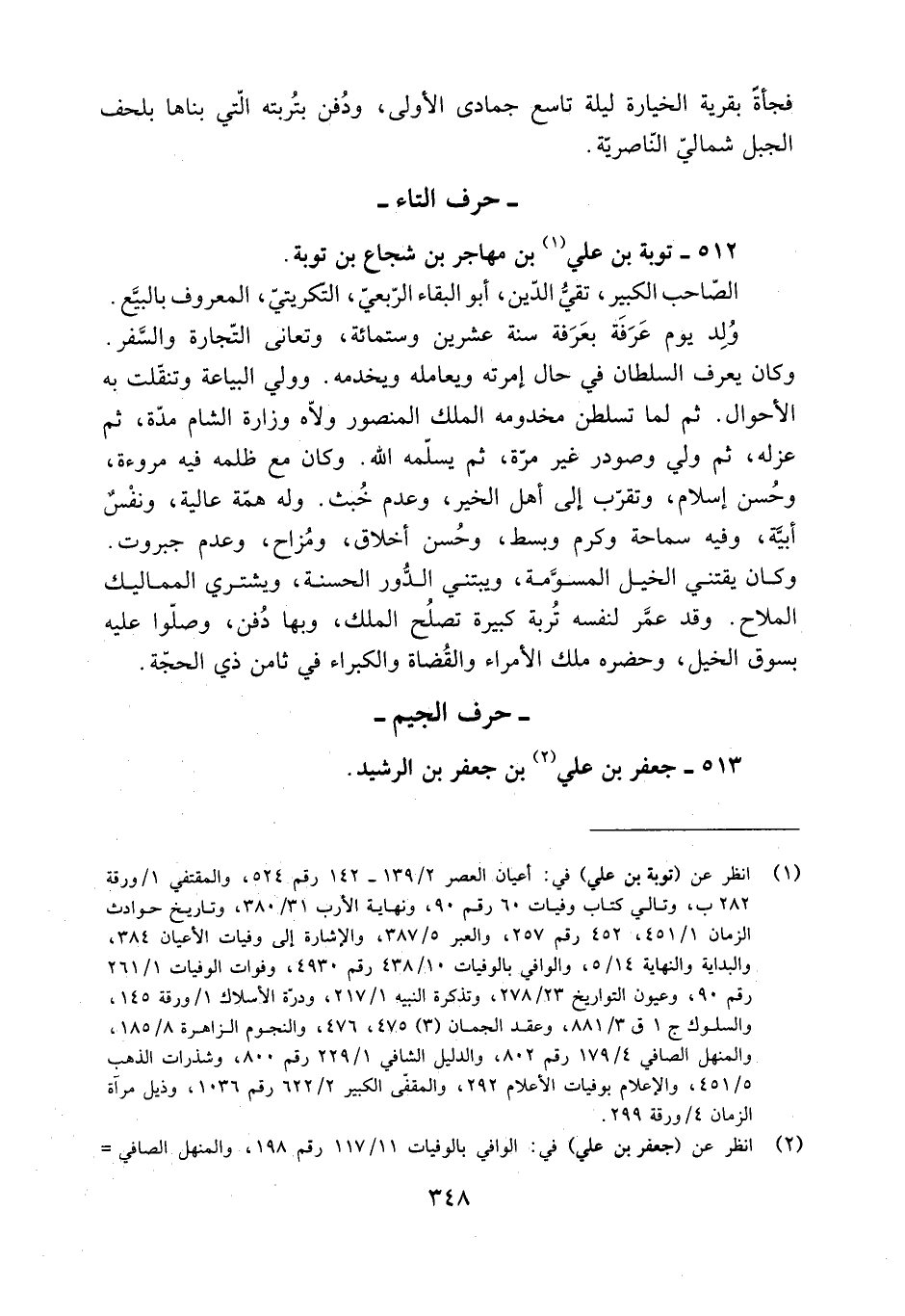 [1] انظر عن (توبة بن علي) في: أعيان العصر 2/ 139- 142 رقم 524، والمقتفي 1/ ورقة 282 ب، وتالي كتاب وفيات 60 رقم 90، ونهاية الأرب 31/ 380، وتاريخ حوادث الزمان 1/ 451، 452 رقم 257، والعبر 5/ 387، والإشارة إلى وفيات الأعيان 384، والبداية والنهاية 14/ 5، والوافي بالوفيات 10/ 438 رقم 4930، وفوات الوفيات 1/ 261 رقم 90، وعيون التواريخ 23/ 278، وتذكرة النبيه 1/ 217، ودرة الأسلاك 1/ ورقة 145، والسلوك ج 1 ق 3/ 881، وعقد الجمان (3) 475، 476، والنجوم الزاهرة 8/ 185، والمنهل الصافي 4/ 179 رقم 802، والدليل الشافي 1/ 229 رقم 800، وشذرات الذهب 5/ 451، والإعلام بوفيات الأعلام 292، والمقتفي الكبير 2/ 622 رقم 1036، وذيل مرآة الزمان 4/ ورقة 299.
