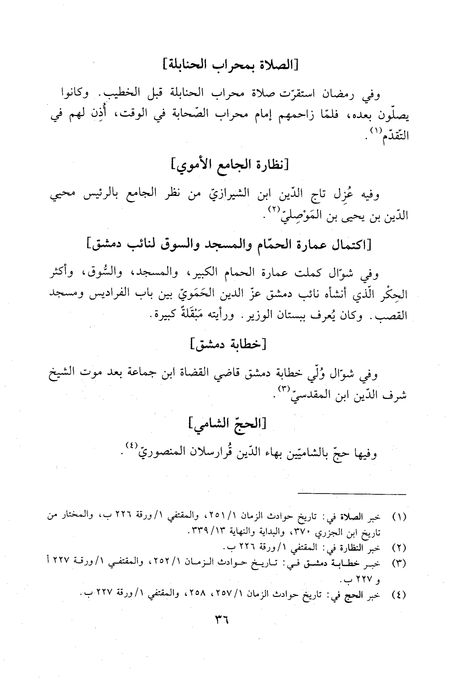 [4] خبر الحج في: تاريخ حوادث الزمان 1/ 257، 258، والمقتفي 1/ ورقة 227 ب.