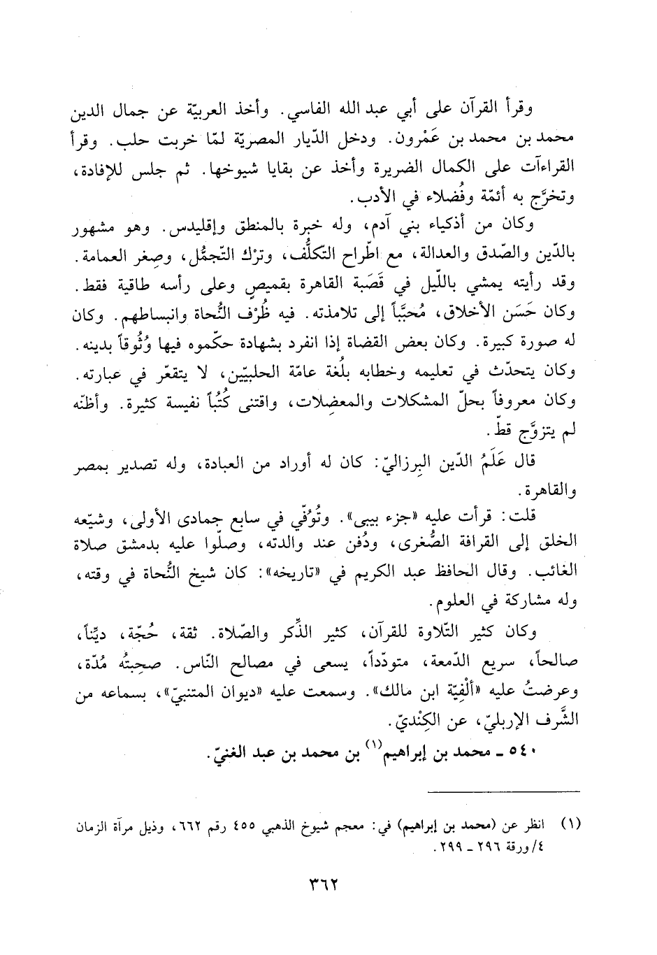 540- مُحَمَّد بْن إِبْرَاهِيم [1] بْن مُحَمَّد بْن عَبْد الغنيّ.