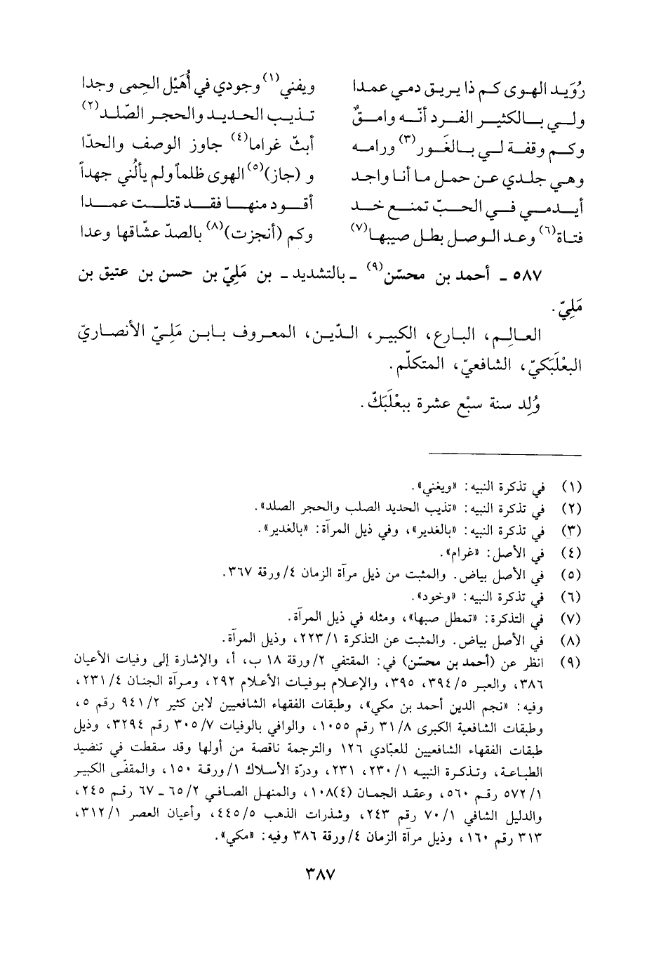 [9] انظر عن (أحمد بن محسن) في: المقتفي 2/ ورقة 18 ب، أ، والإشارة إلى وفيات الأعيان 386، والعبر 5/ 394، 395، والإعلام بوفيات الأعلام 292، ومرآة الجنان 4/ 231، وفيه: «نجم الدين أحمد بن مكي» ، وطبقات الفقهاء الشافعيين لابن كثير 2/ 941 رقم 5، وطبقات الشافعية الكبرى 8/ 31 رقم 1055، والوافي بالوفيات 7/ 305 رقم 3294، وذيل طبقات الفقهاء الشافعيين للعبادي 126 والترجمة ناقصة من أولها وقد سقطت في تنضيد الطباعة، وتذكرة النبيه 1/ 230، 231، ودرة الأسلاك 1/ ورقة 150، والمقفى الكبير 1/ 572 رقم 560، وعقد الجمان (4) 108، والمنهل الصافي 2/ 65- 67 رقم 245، والدليل الشافي 1/ 70 رقم 243، وشذرات الذهب 5/ 445، وأعيان العصر 1/ 312، 313 رقم 160، وذيل مرآة الزمان 4/ ورقة 386 وفيه: «مكي» .