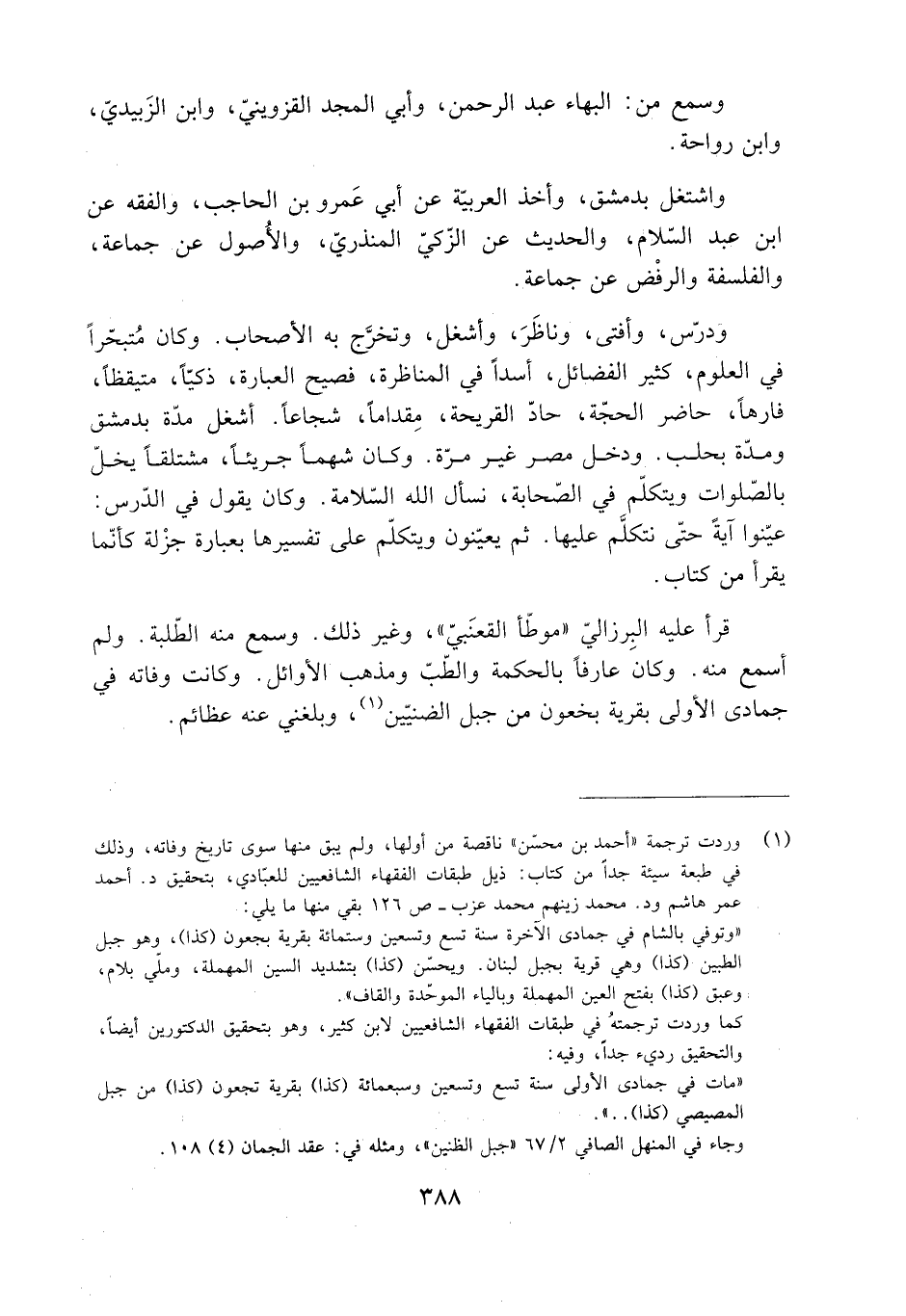 كما وردت ترجمته في طبقات الفقهاء الشافعيين لابن كثير، وهو بتحقيق الدكتورين أيضا، والتحقيق رديء جدا، وفيه: