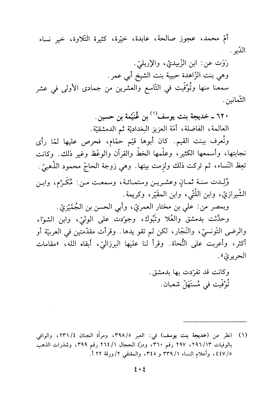 620- خديجة بِنْت يُوسُف [1] بْن غُنَيْمة بْن حُسَيْن.