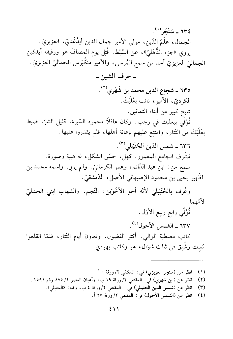 [4] انظر عن (الشمس الأحول) في: المقتفي 2/ ورقة 27 أ.