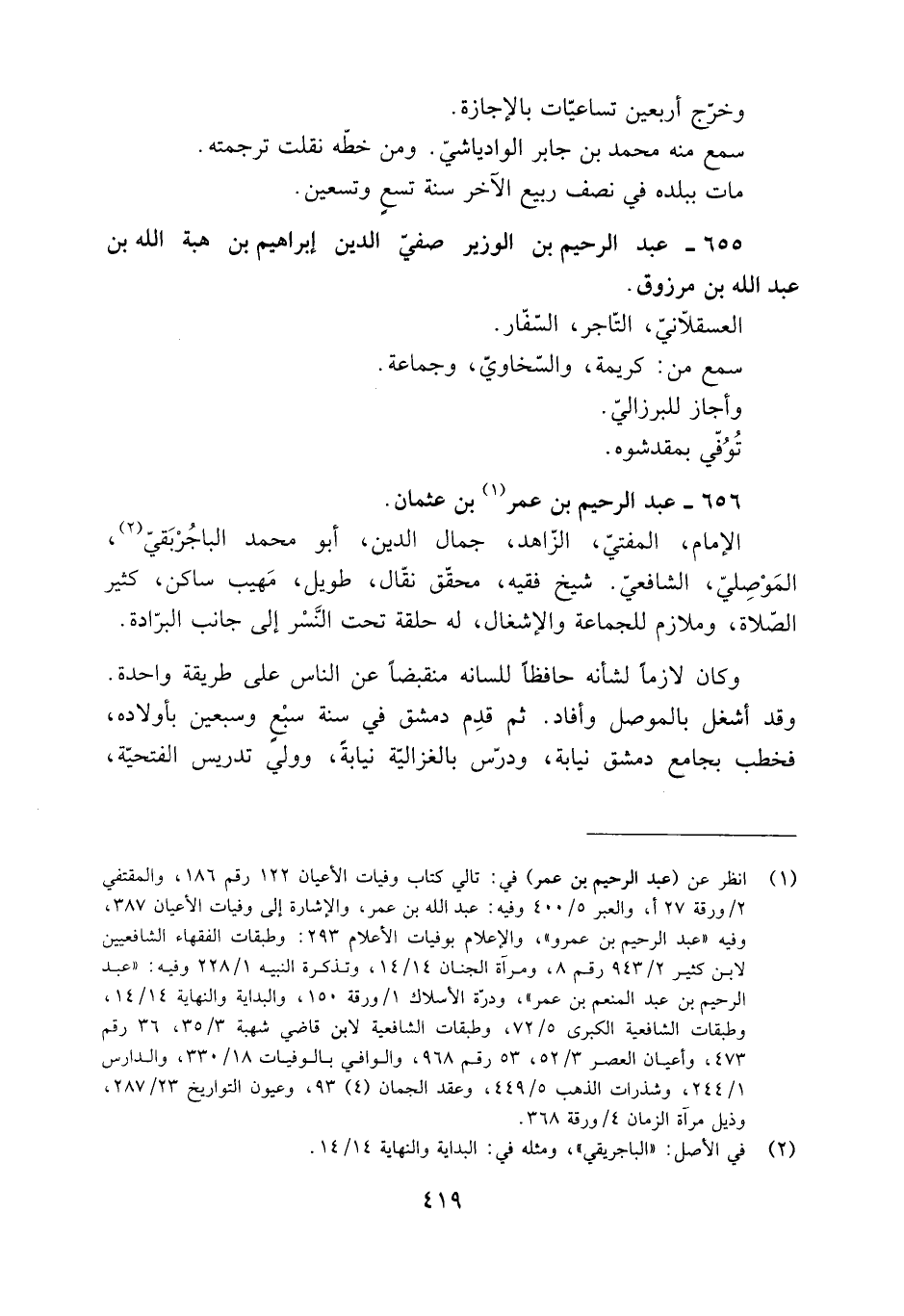 655- عَبْد الرحيم بْن الوزير صفيّ الدِّين إِبْرَاهِيم بْن هبة اللَّه بْن عَبْد اللَّهِ بْن مرزوق.