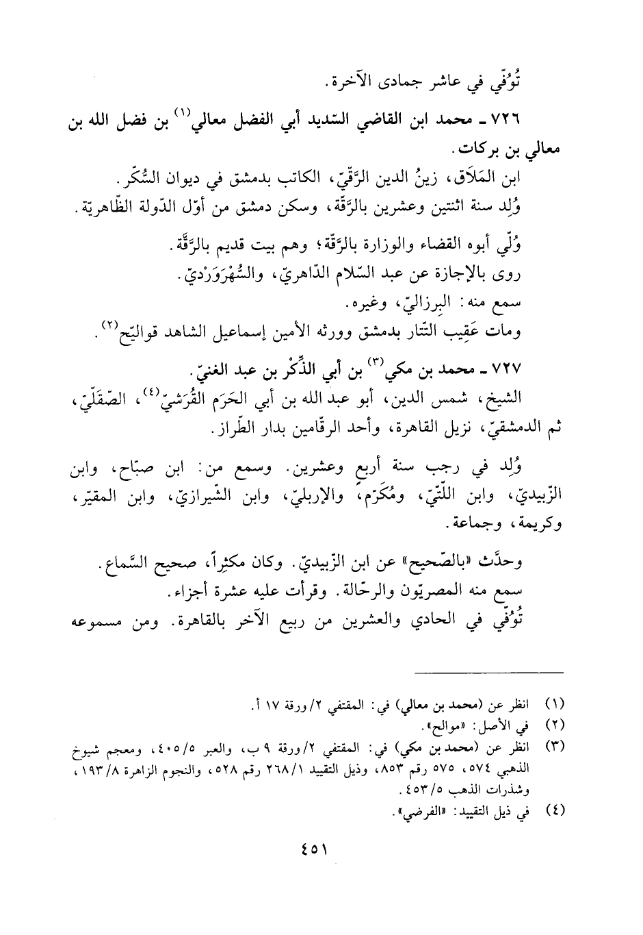 726- مُحَمَّد ابْن القاضي السّديد أبي الفَضْل معالي [1] بْن فضل اللَّه بْن معالي بْن بركات.