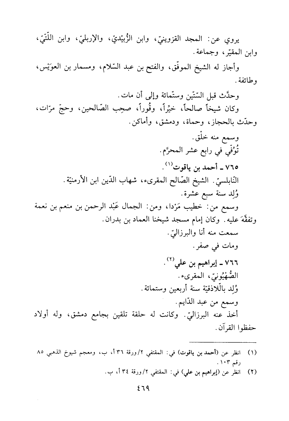 [1] انظر عن (أحمد بن ياقوت) في: المقتفي 2/ ورقة 36 أ، ب، ومعجم شيوخ الذهبي 85 رقم 103.