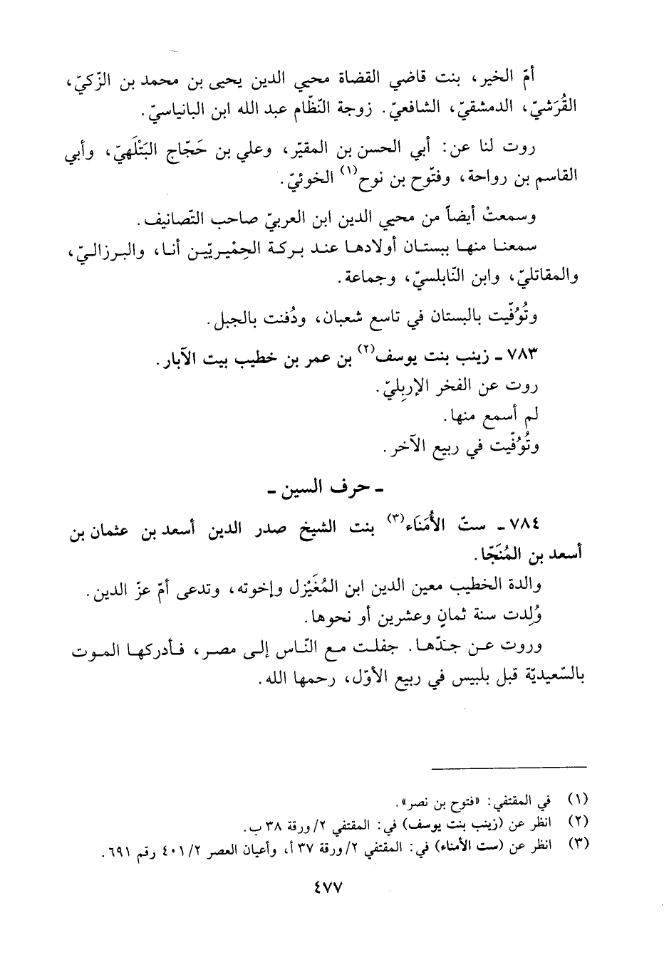[2] انظر عن (زينب بنت يوسف) في: المقتفي 2/ ورقة 38 ب.