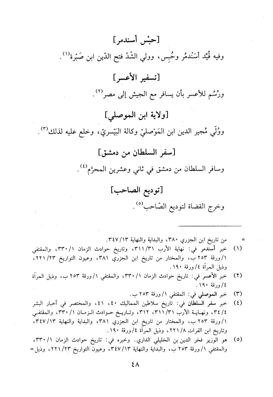 [1] خبر أسندمر في: نهاية الأرب 31/ 311، وتاريخ حوادث الزمان 1/ 330، والمقتفي 1/ ورقة 253 ب، والمختار من تاريخ ابن الجزري 381، وعيون التواريخ 23/ 221، وذيل المرآة 4/ ورقة 190.