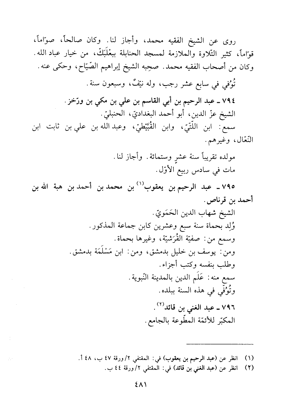 795- عَبْد الرحيم بْن يَعْقُوب [1] بْن مُحَمَّد بْن أَحْمَد بْن هِبة اللَّه بْن أَحْمَد بْن قرناص.