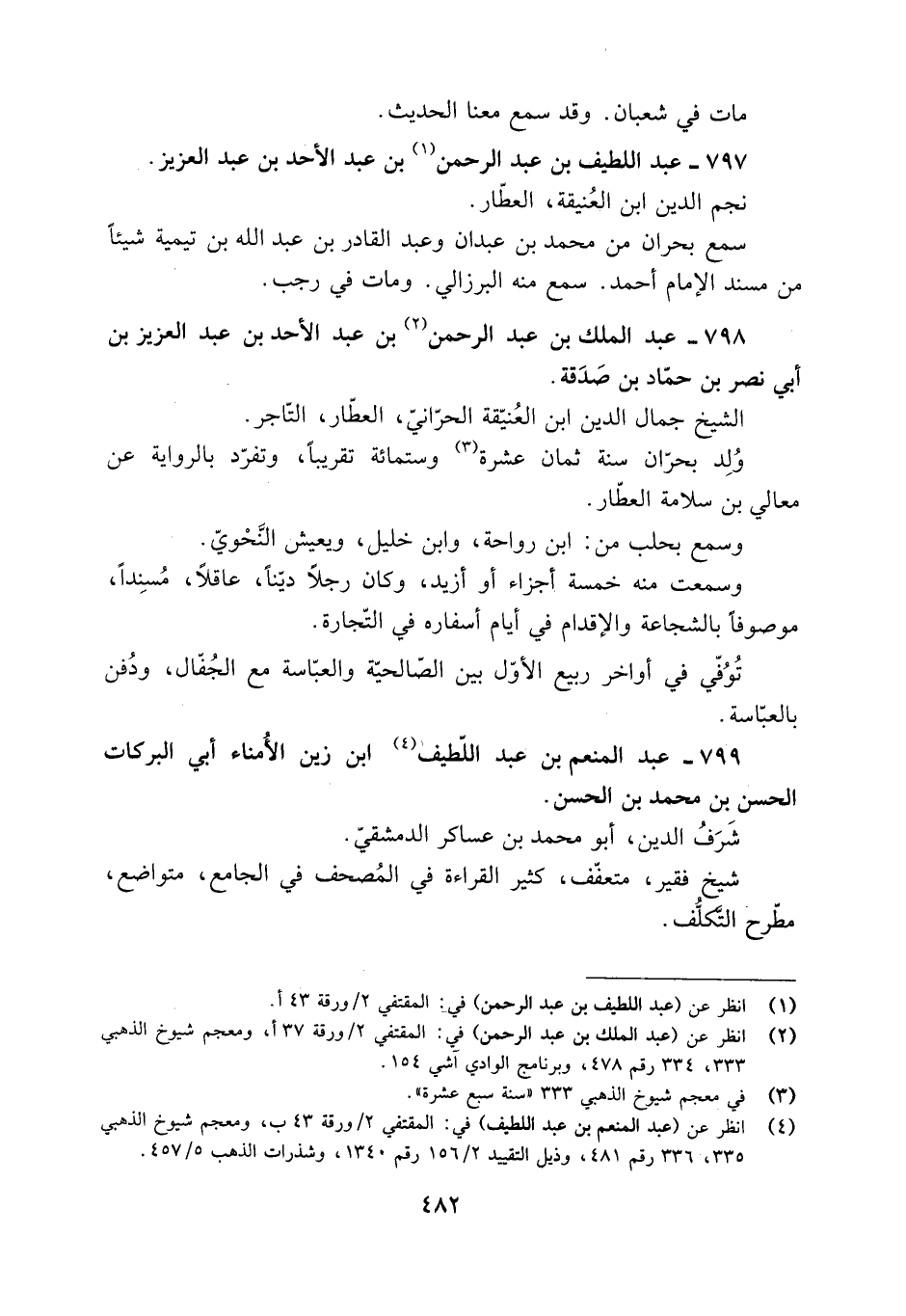 797- عَبْد اللطيف بْن عَبْد الرَّحْمَن [1] بْن عَبْد الأحد بْن عبد العزيز.
