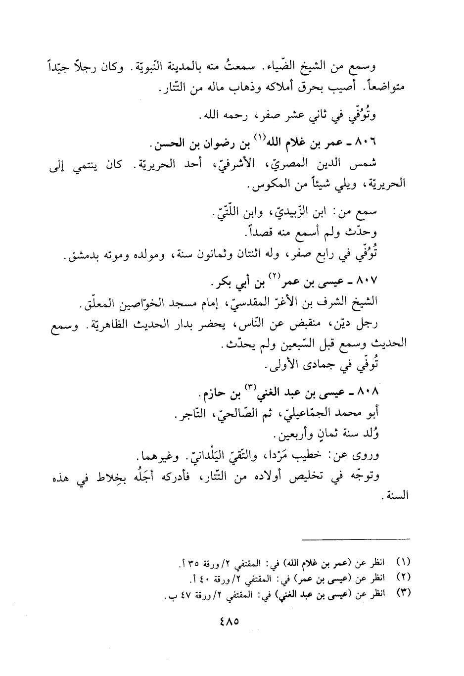 806- عُمَر بْن غلام اللَّه [1] بْن رضوان بْن الْحَسَن.