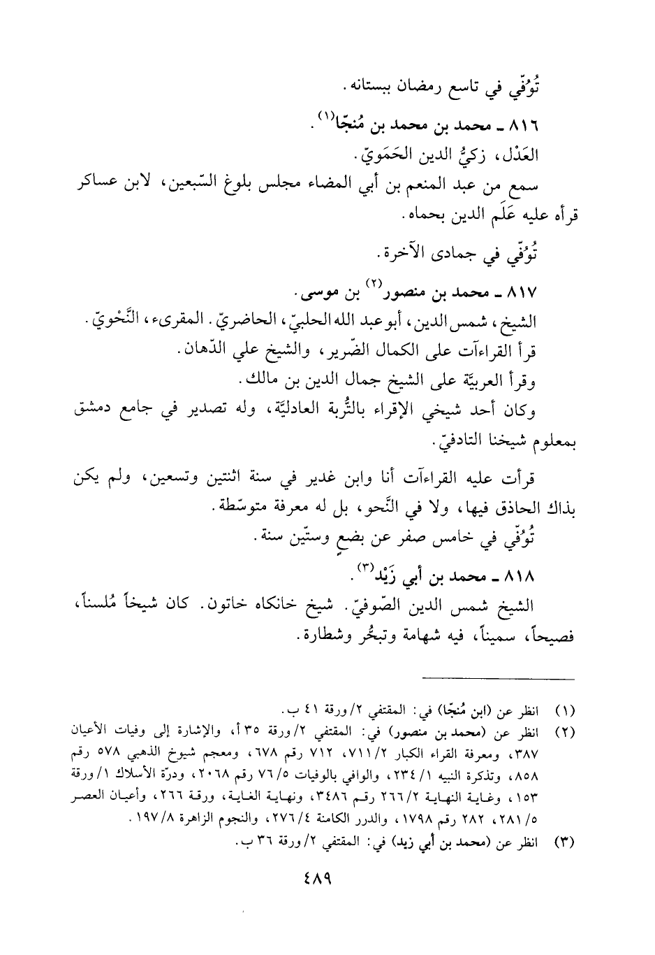 [1] انظر عن (ابن منجّا) في: المقتفي 2/ ورقة 41 ب.