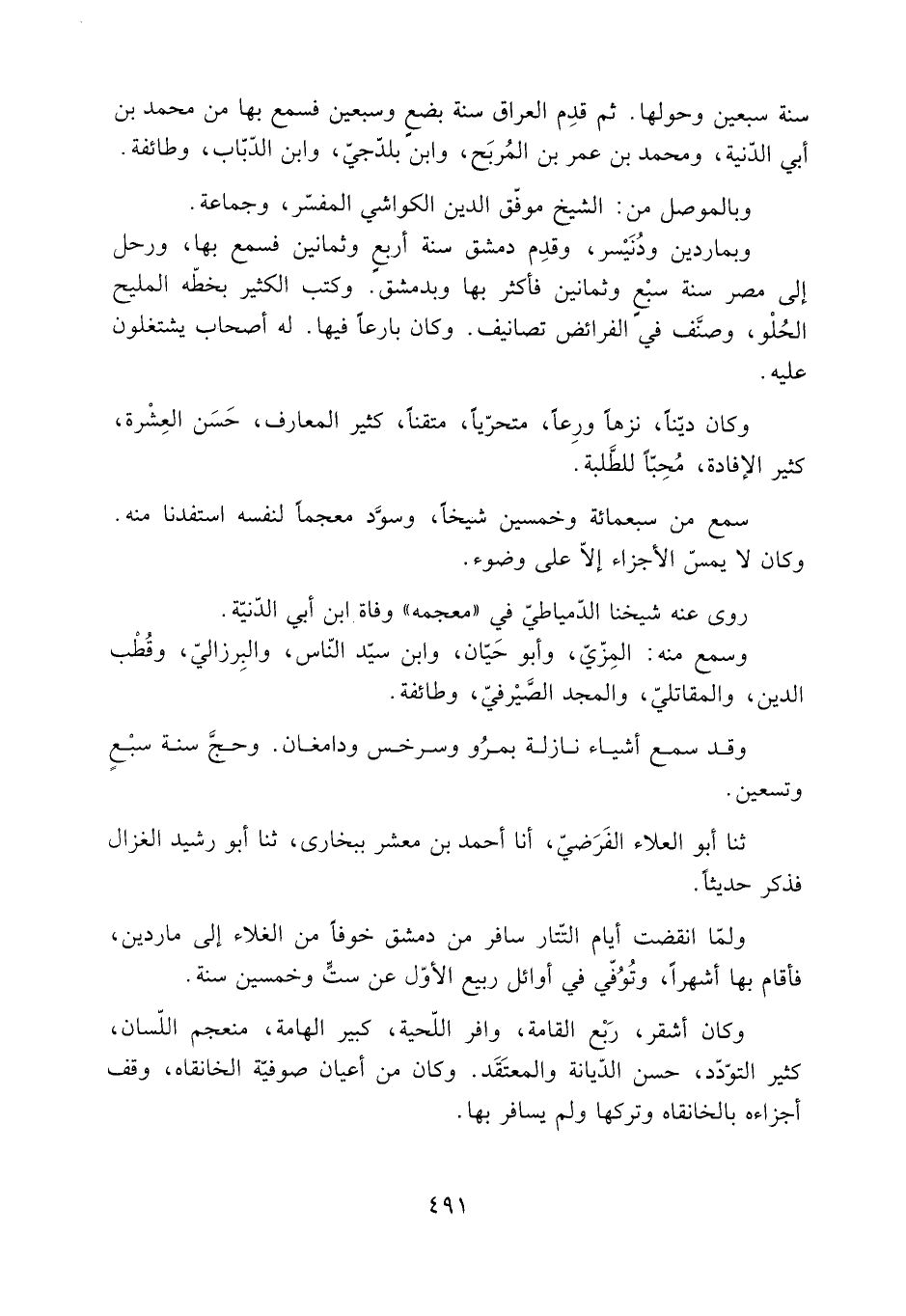 وبماردين ودُنَيْسر، وقدِم دمشق سنة أربعٍ وثمانين فسمع بها، ورحل إلى مصر سنة سبْعٍ وثمانين فأكثر بها وبدمشق. وكتب الكثير بخطّه المليح الحُلْو، وصنَّف فِي الفرائض تصانيف. وكان بارعا فيها. له أصحاب يشتغلون عليه.